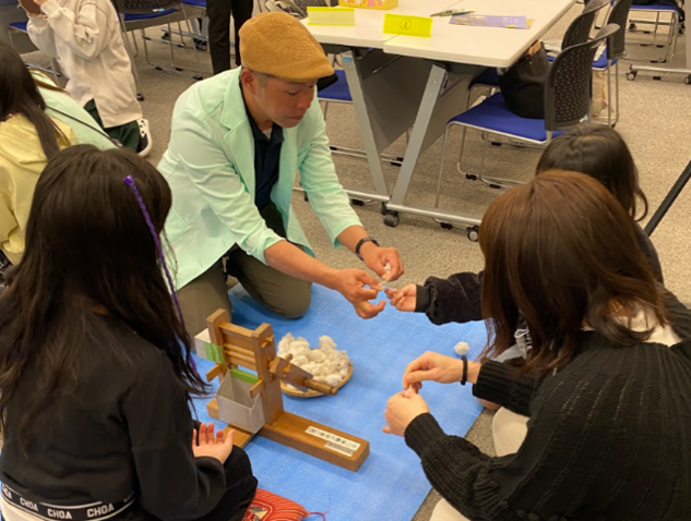 その中、今回は伯州綿と、保護者の方も意外と知らないことが多い“おりもの”について「親子で学べる」内容となっており、クイズや綿(わた)くり体験、おりもの実験など参加・体験型で、親子で一緒に楽しく学んでいただくことができた素晴らしいイベントになりました。