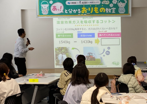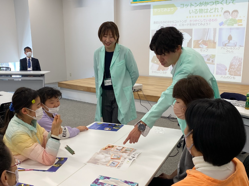 児童や保護者の方々と一緒に「コットン」について楽しく考えていただきました。