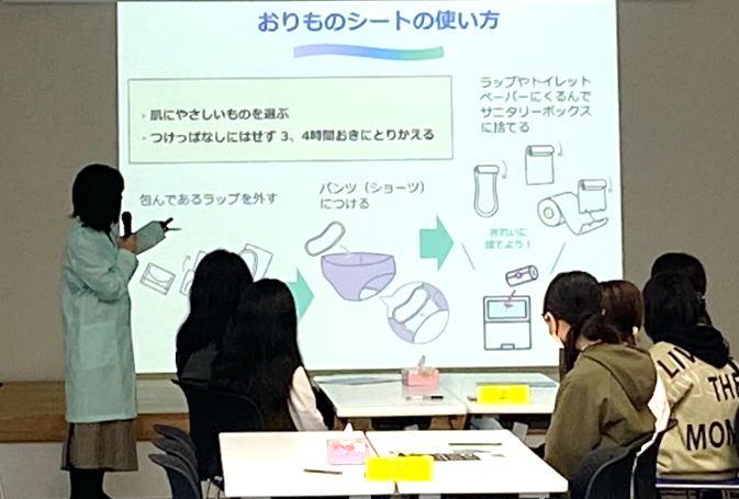 最後に、NPO法人HIKIDASHI 代表理事 大石真那様を講師にお招きし、「おりもの授業」を行いました。