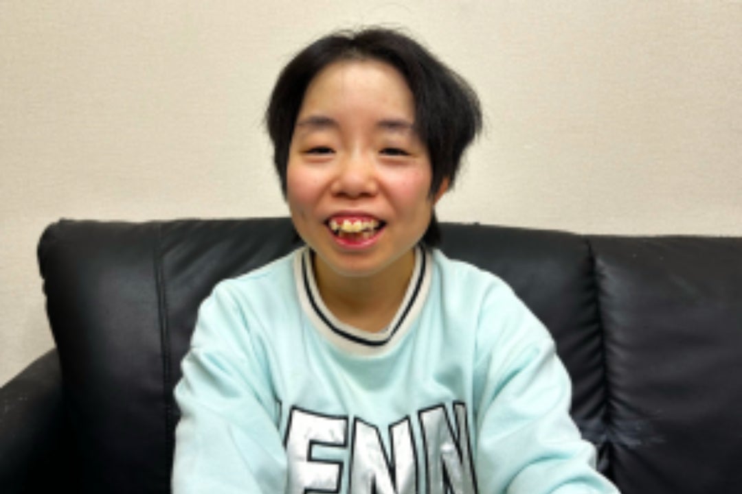 サコッシュのショルダーベルトにはシートベルト端材を使用し、オレンジ色の本体はテントの製造過程で出たターポリン端材を活用しました。印刷された作品の作者・長谷川さん(滋賀県近江八幡市の就労継続支援B型事業所おうみや所属)は、「多くの人によろこんでもらえるとうれしいなと思ってます」と話しています。