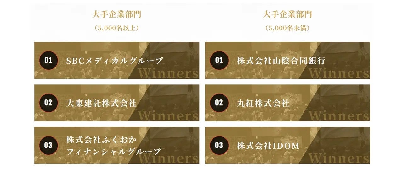 SBCメディカルグループホールディングス(米国カリフォルニア州 CEO:相川佳之、)の連結子会社であり、全国の医療機関への経営支援事業を展開するSBCメディカルグループは、株式会社リンクアンドモチベーション(本社:東京都中央区、代表取締役会長:小笹 芳央、証券コード:2170、以下リンクアンドモチベーション)が発表した、「ベストモチベーションカンパニーアワード2025」において、大手企業部門(従業員5000名以上)の第1位を受賞いたしました。これにより、当社は3年連続受賞を達成し、殿堂入りを果たしました。今後も、社員の意識改革を通じて、さらなる企業価値の向上に努めてまいります。