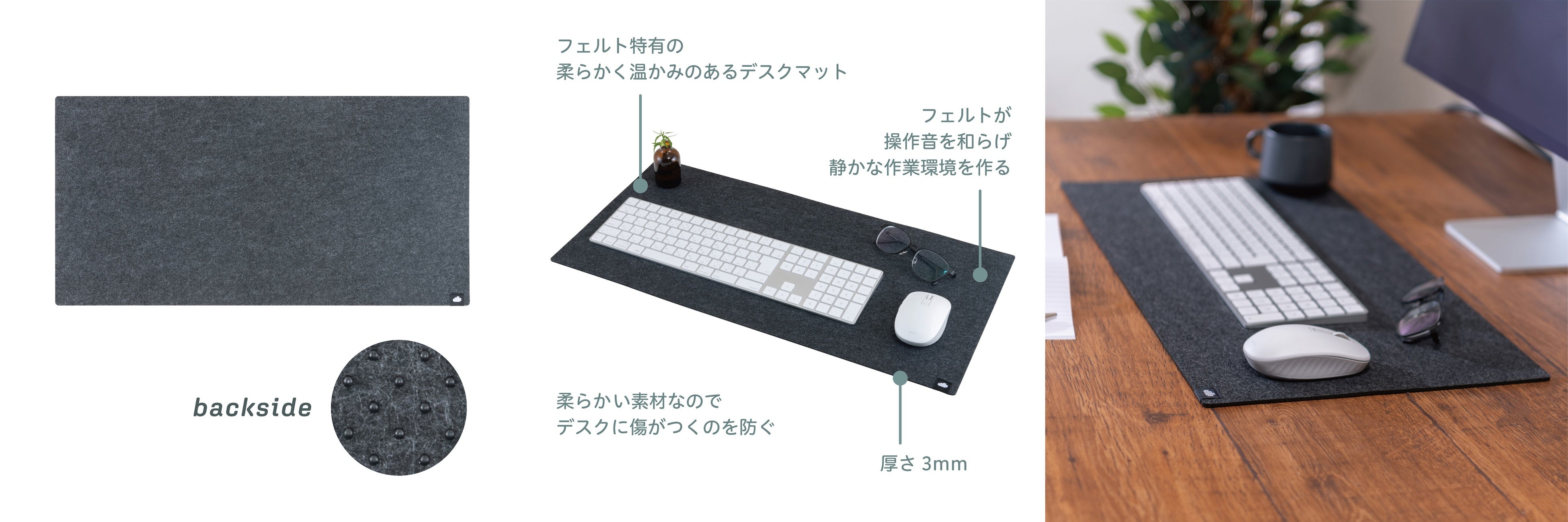 やわらかい素材がデスクを傷から守り、心地よい使い心地を実現する