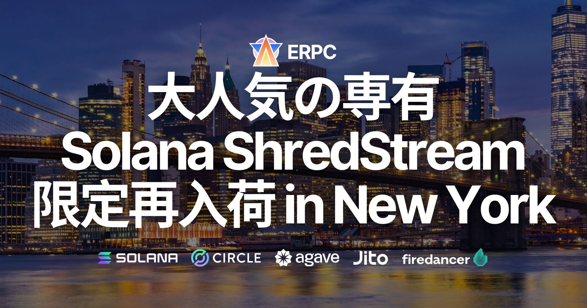 ERPC、大人気の専有Solana ShredStreamがニューヨークリージョンに限定再入荷