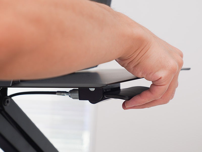 本製品は片手で楽に高さ調節ができるガス圧式のパソコンスタンドです。