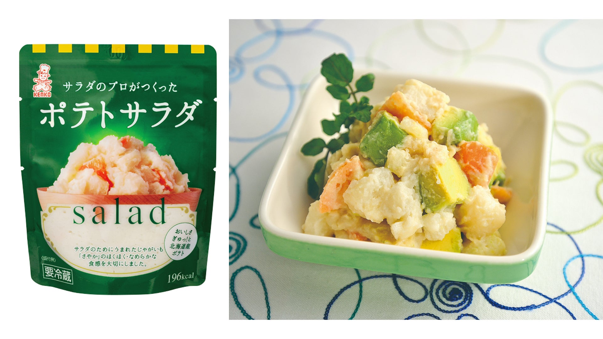北海道で栽培されたサラダに適したじゃがいも「さやか」を使用したポテトサラダです。いもの風味豊かな味わいと、ホクホクとした食感となめらかな舌ざわりが特長です。