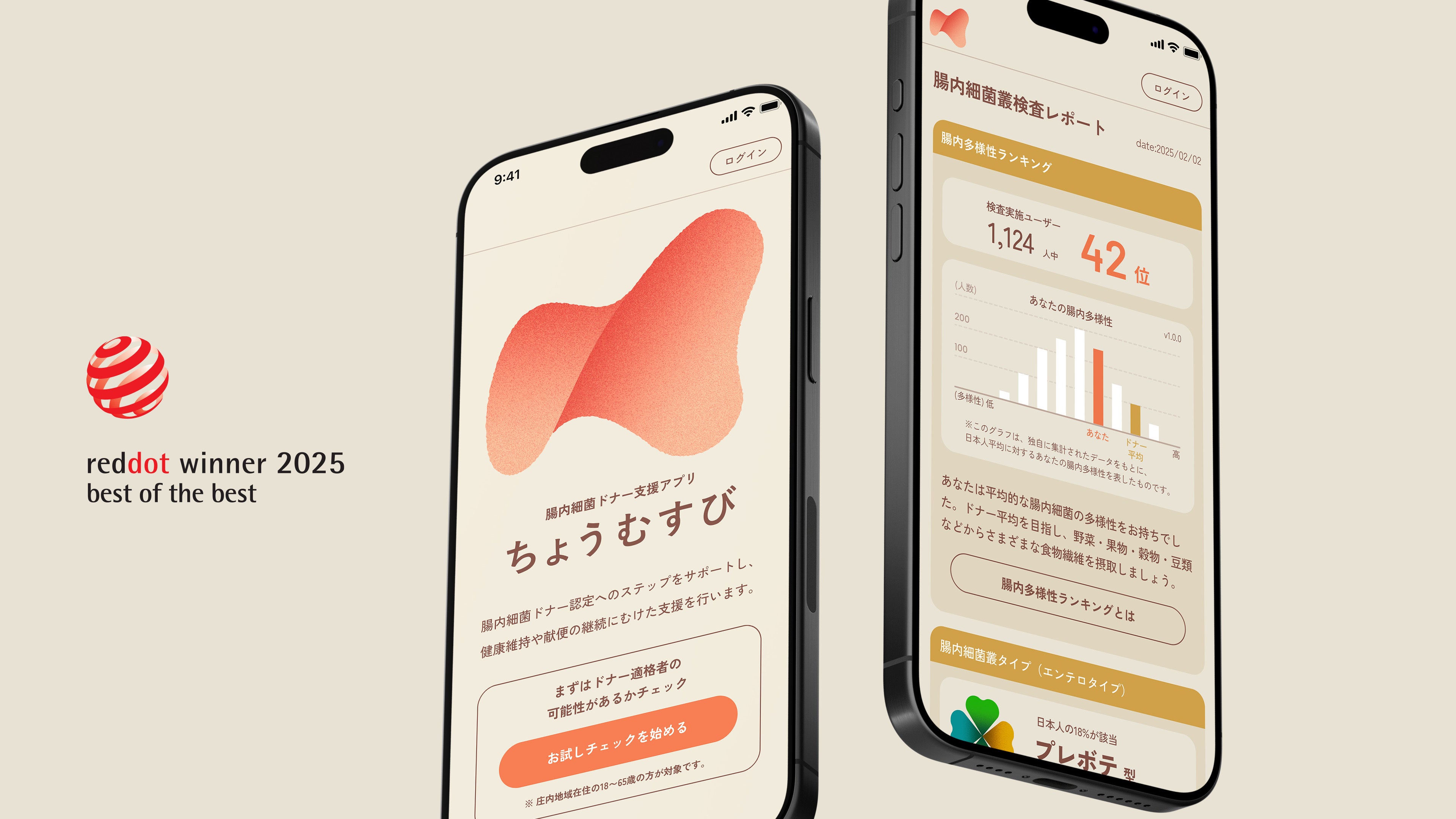 株式会社電通デジタル(本社:東京都港区 代表取締役執行役員:瀧本 恒 以下、電通デジタル)は、株式会社電通(本社:東京都港区 代表取締役 社長執行役員:佐野 傑 以下、電通)と共同で、メタジェンセラピューティクス株式会社(本社:山形県鶴岡市 代表取締役CEO:中原 拓 以下、メタジェンセラピューティクス)が提供する「うんちのドネーション」支援サービス「ちょうむすび」※1のサービスデザインの企画・制作を支援し、世界的に権威のあるデザイン賞の一つ「Red Dot Award: Design Concept 2025」において、最高位の「Best of the Best」を受賞しました。