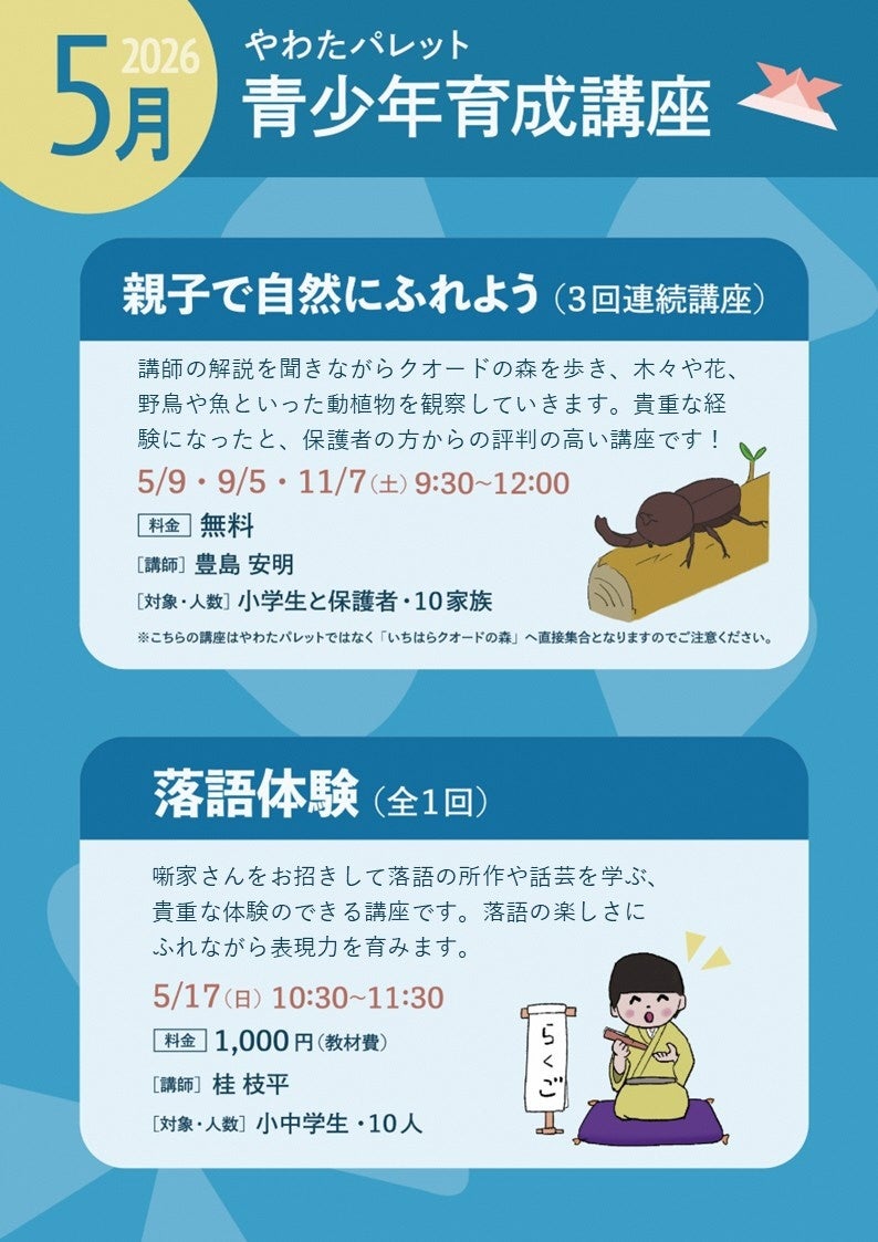 詳細はリーフレット、やわたパレットウェブサイトをご覧ください。