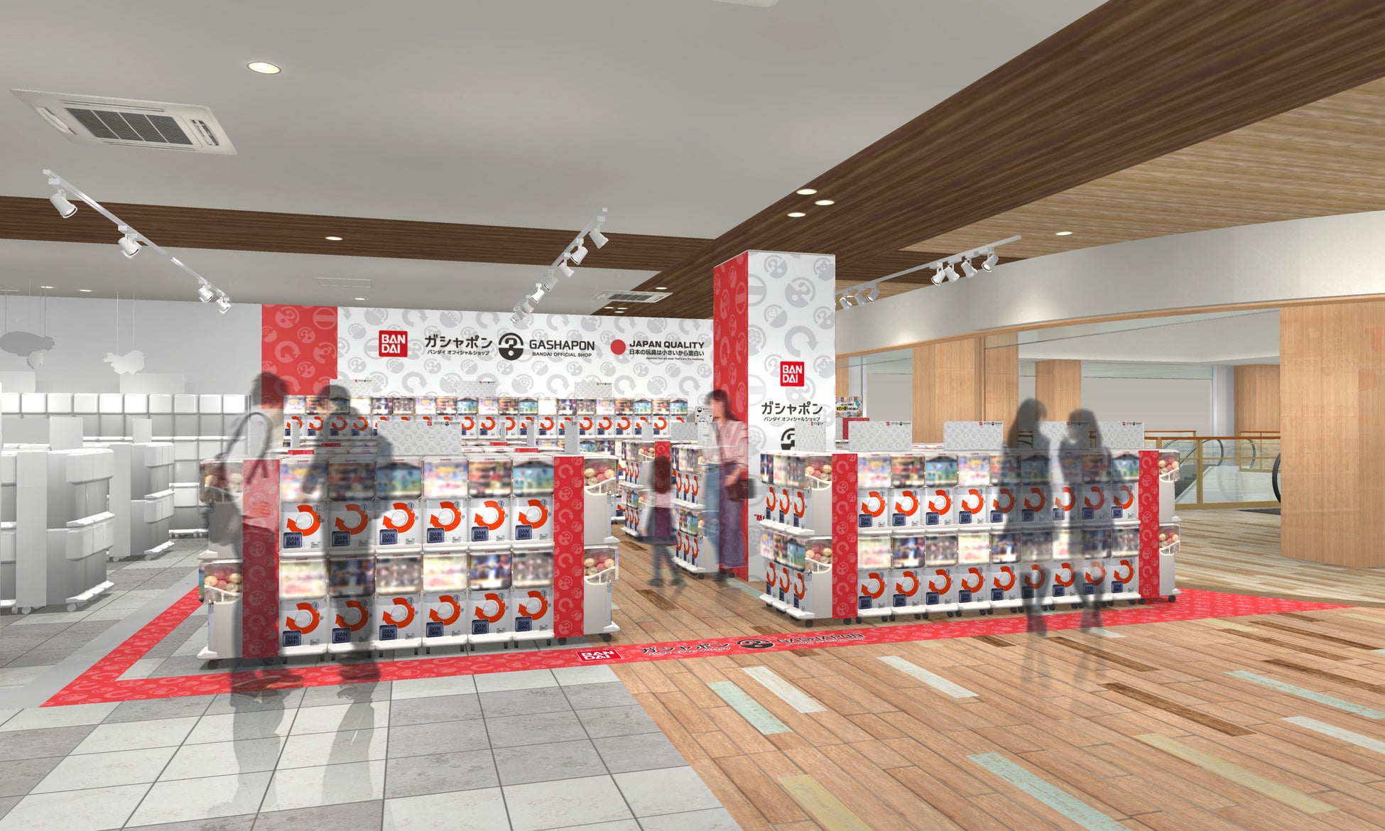 同施設内で展開中のアミューズメント施設「ナムコ」と同じ2階フロアに、「一番くじ公式ショップ」「ガシャポンバンダイオフィシャルショップ」「さんすたーぶんぐのおみせ」「BANDAI CANDY OFFICIAL SHOP」の4店舗を同時オープンします。