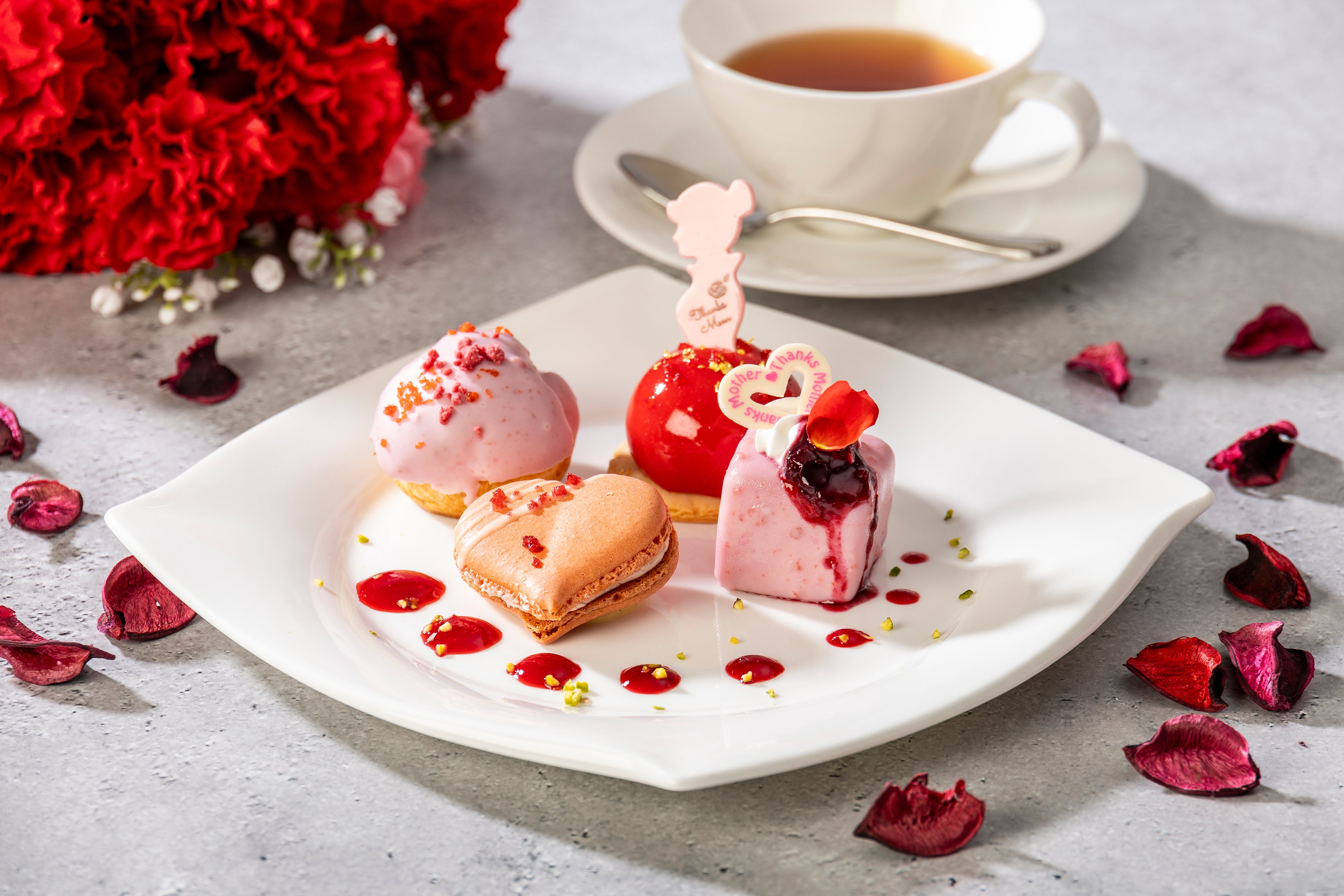 母の日にちなんだ愛らしいハートのマカロンやギフトボックスをモチーフにしたチーズケーキなど、そのままギフトのような可愛らしさです。