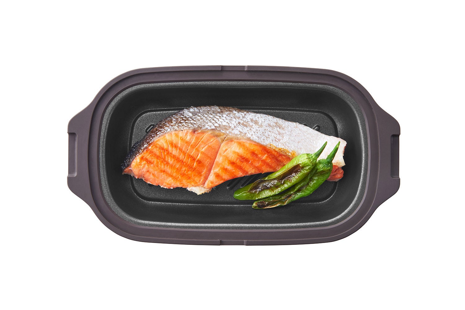 焼き目がくっきりとつく波型プレートを採用。焼魚やステーキなどにおすすめです。余分な脂を落としながら、こんがり美味しく焼き上げます。