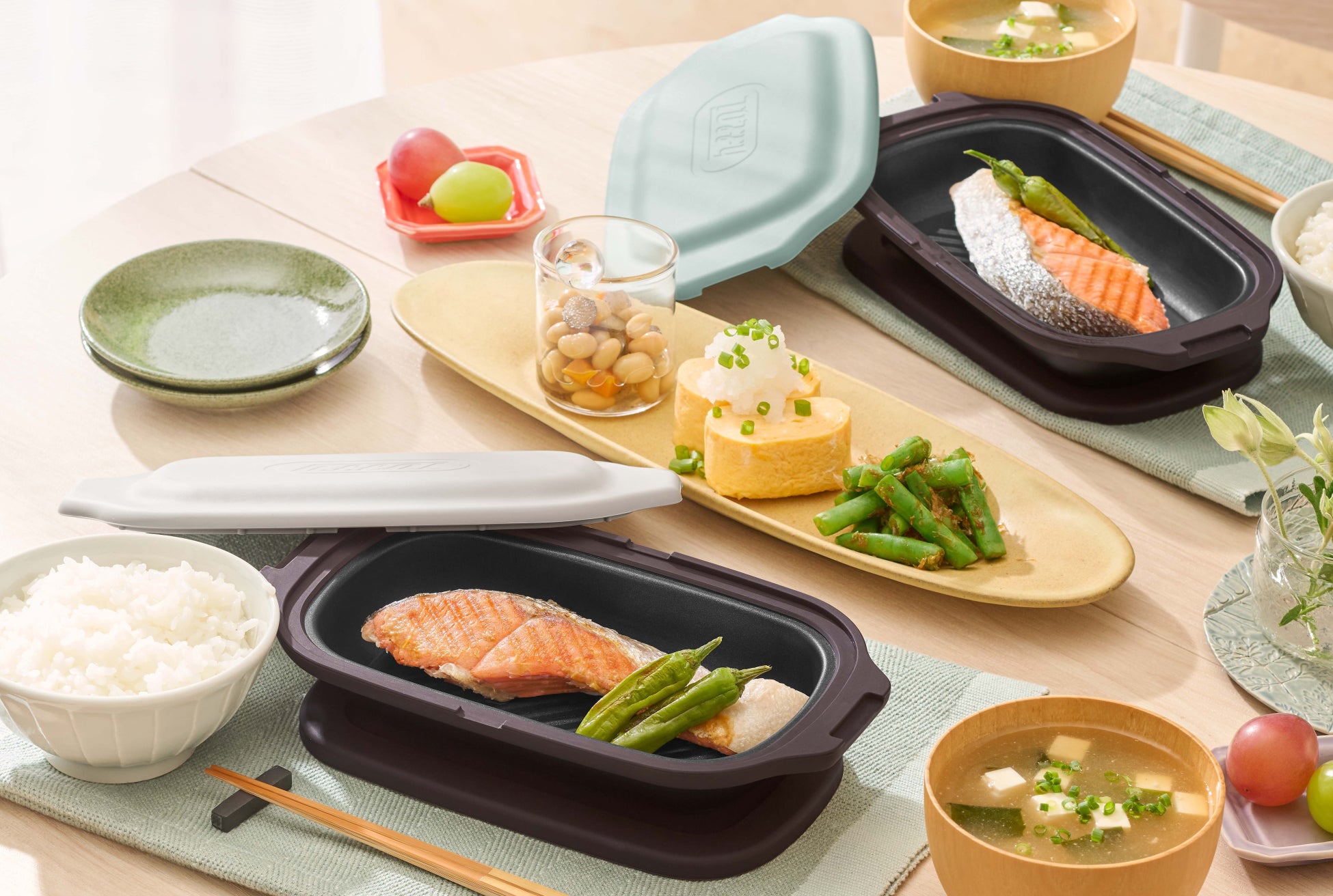 今回新たにシリーズに加わるのは、器としての機能も兼ね備えたちょうどいいサイズの「Toffy 電子レンジ用 グリルディッシュ」。電子レンジからそのまま食卓に出せるシリコーン鍋敷きがセットになっており、調理後アツアツの料理を楽しめるのが特長です。グリル調理をしたようにくっきり焼き目がつく波型プレートを採用しており、余分な脂も落ちてヘルシー!焼魚やステーキなどにおすすめです。深さもあるため、煮込み料理やスイーツまで、焼く・炒める・蒸す・煮る・温め直すの1台5役。幅広い調理にお使いいただけます。器として使えるので、洗い物が増えないのも嬉しいポイントです。