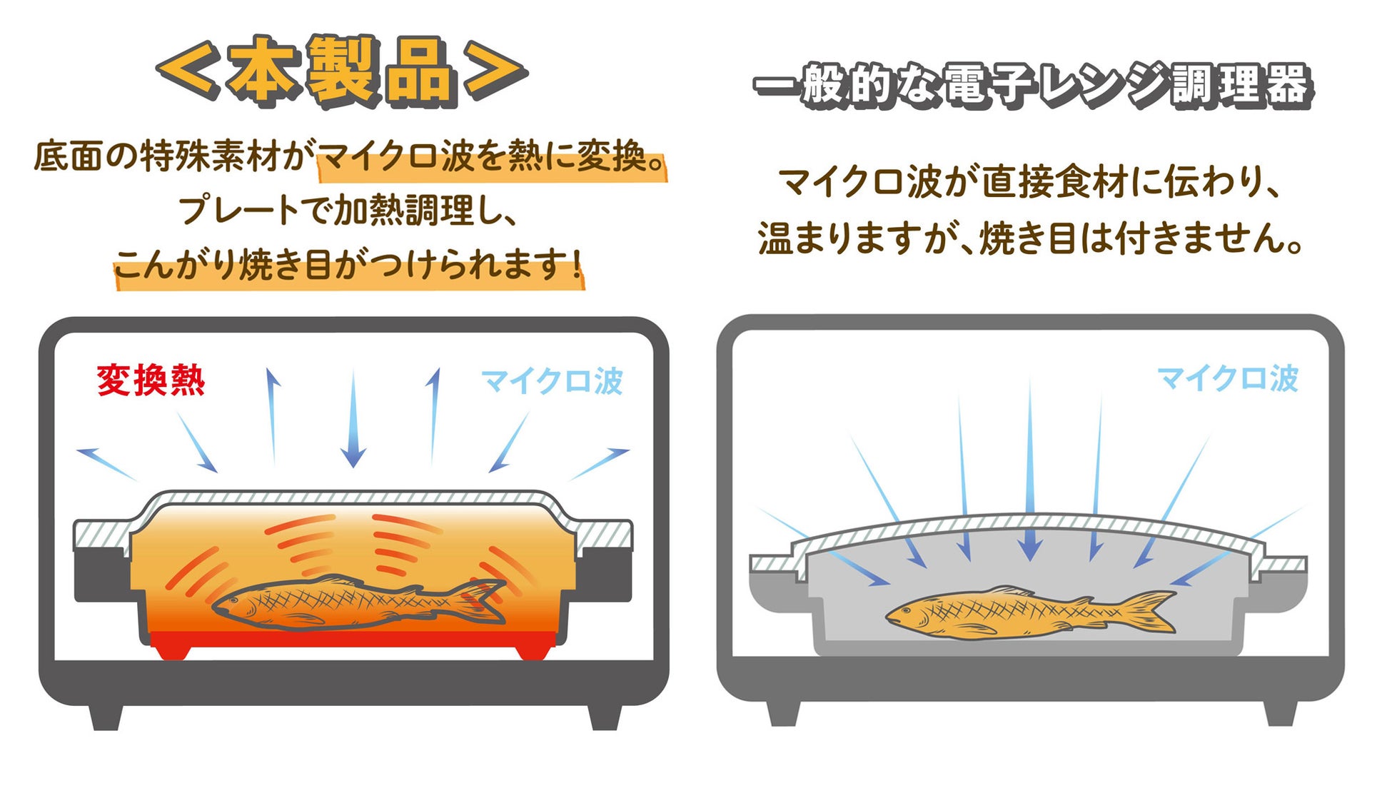 ~電子レンジに入れるだけの“ほったらかし調理”!グリル調理のような焼き目がつく波型プレート採用~