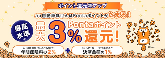 Pontaポイントがたまる「au自動車ほけん」の還元率を引き上げ、au PAY カードの利用で最大3%に