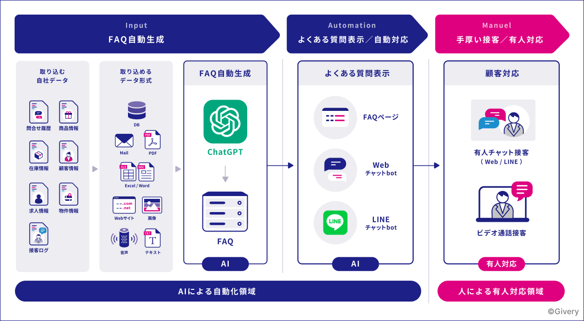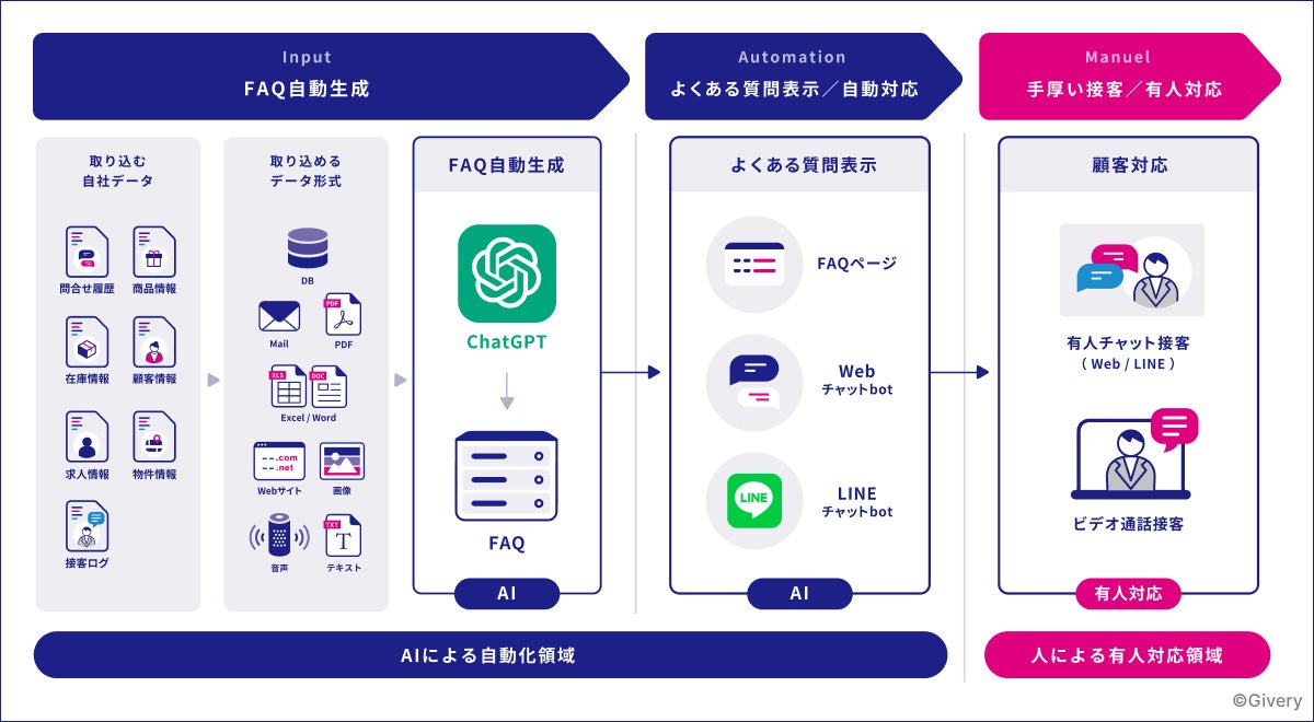ギブリー、「自社データ」×「ChatGPT」で顧客対応を自動化するAI-FAQ / AI-チャットボット「DECA カスタマーサポート」を6月5日より提供開始。