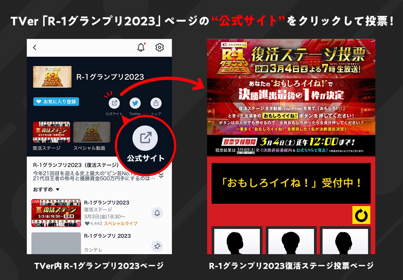 TVer上の「公式サイト」ボタンをタップし、投票ページに移動してください。