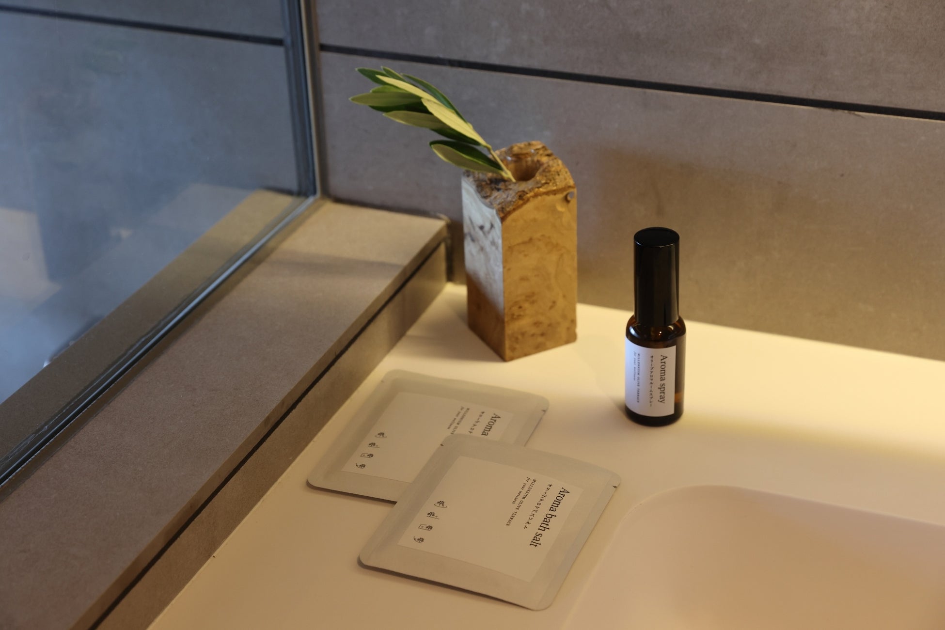 ・オリーブアロマルームスプレー自社農園「オリーヴの森」でつくられた美容オリーブオイル「ジ・オリーヴオイル(小豆島産)」をベースにしたオリーブアロマのルームスプレー。この場所のためだけにつくられた香りのミストが優しく包み込んでくれます。ご自分のタイミングでお好きなところへどうぞ。・オリーブアロマバスソルト
