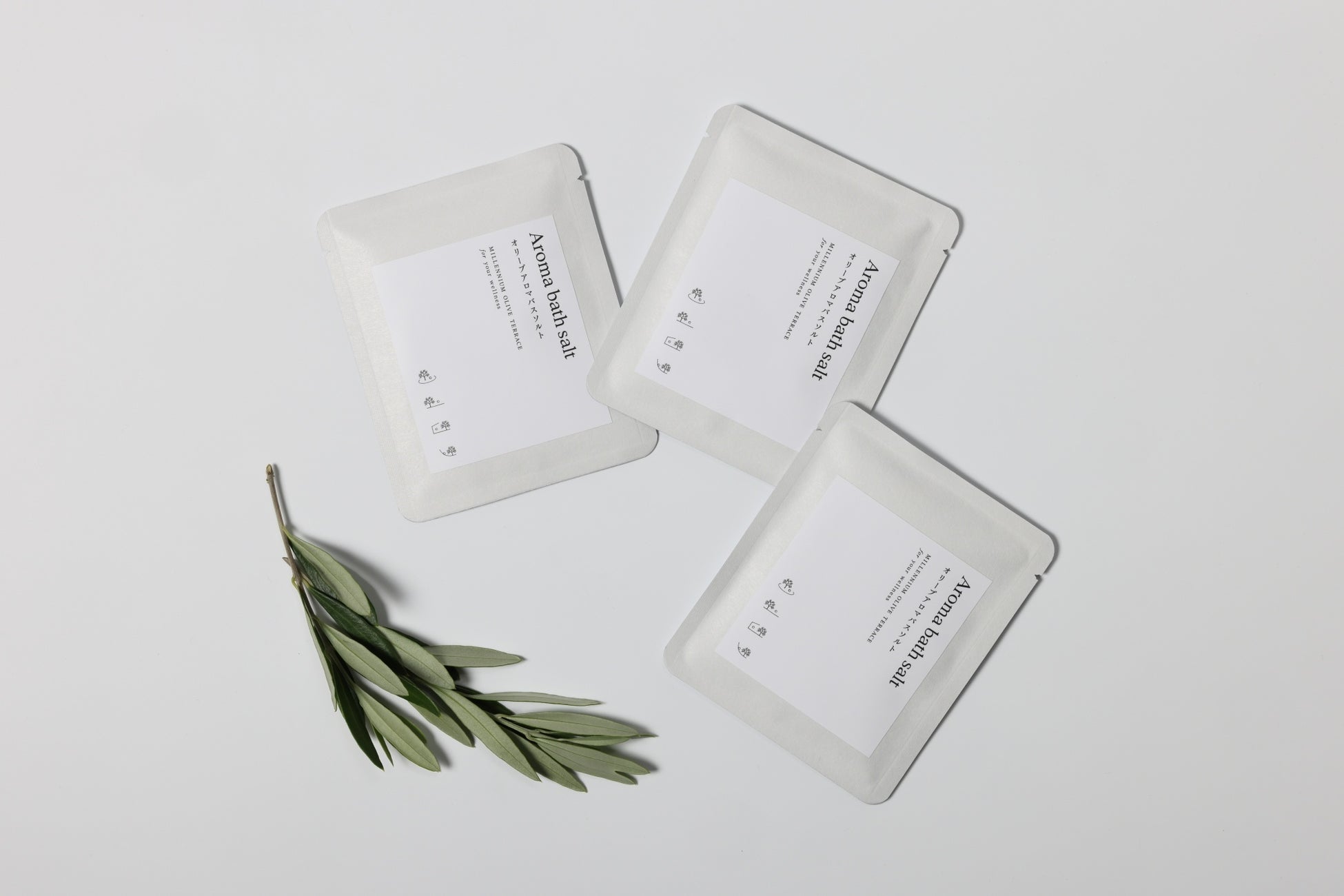 オリーブアロマを用いたオリジナルのバスソルト。オリーブの香りが不安や緊張、ストレスでこわばった気持ちを包み込み、明るい気分へと導いてくれます。目を閉じ、深い呼吸を繰り返せば、香りに癒されゆったりとしたバスタイムを過ごせます。