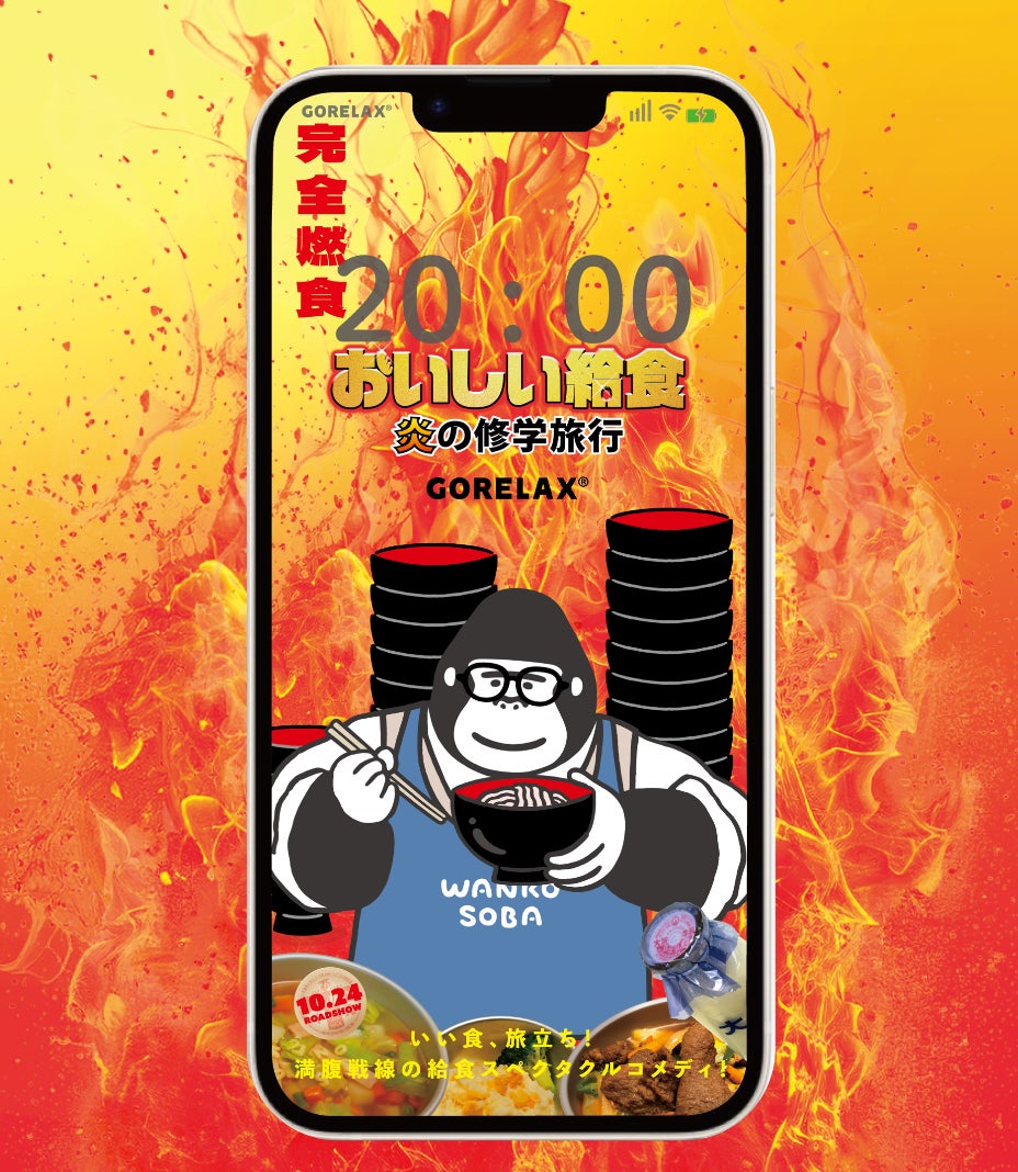 サウナブランド「ごリラックス」と映画『おいしい給食 炎の修学旅行』のコラボが実現!まもるさんと甘利田先生がコラボしたロック画面を10月17日(金)より順次公開中。ごリラックス公式Xにて無料配布中。