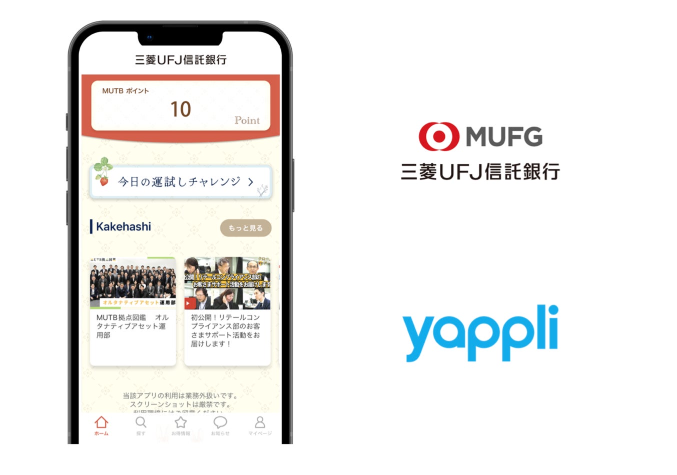 ヤプリ、三菱UFJ信託銀行社内向け「Kakehashiアプリ」を開発支援