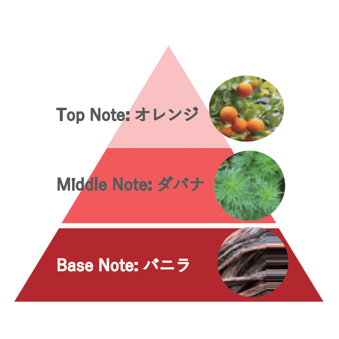 天然精油のブレンドで作られたヴェレダの「ざくろ」の香りは、“オレンジ” と“ダバナ”のフルーティーで甘く芳醇な香りが特徴。さらに、ベースノートの“バニラ” の香りが柔らかく全体を包み込み、ほっとするような安らぎをもたらします。