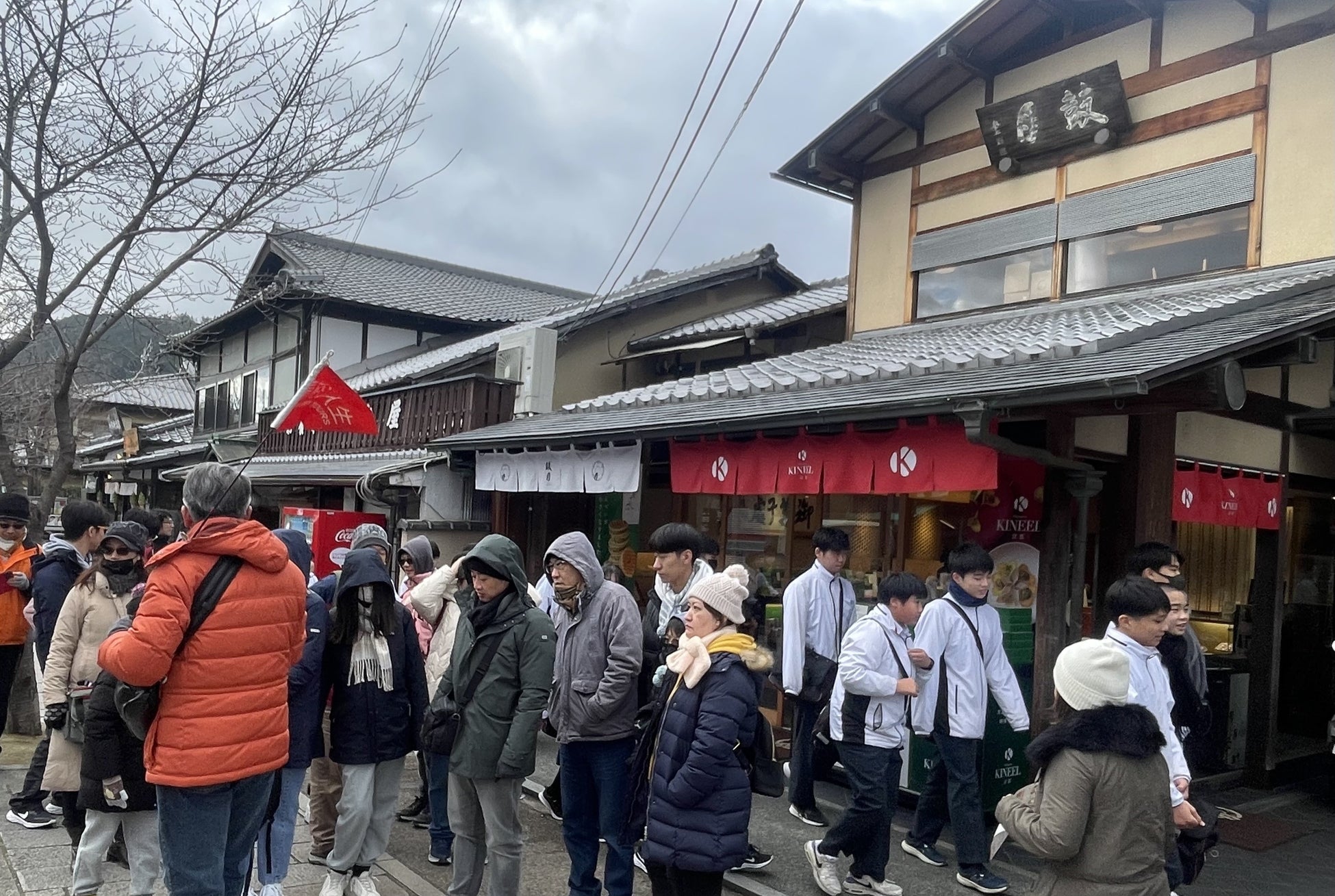 2023年11月に観光庁が実施した宿泊旅行統計調査によると、京都府への外国人延べ宿泊者数は、1,466,170人に達し、コロナウイルス流行前の2019年と比べ+34.2%という結果となりました。その影響を受け、京都を代表する観光地・嵐山にある京菓子處鼓月嵐山店では、多くの訪日外国人旅行者がご来店して頂き、「姫千寿せんべい有機抹茶」が一日の販売数の約6割を占めるほど大人気商品になりました。その中、同店で多く聞かれたのは「千寿せんべいアイスクリームの抹茶味は無いですか?」という声でした。そのお声がきっかけとなり、試行錯誤を重ね「千寿せんべいアイスクリーム抹茶」が誕生致しました。