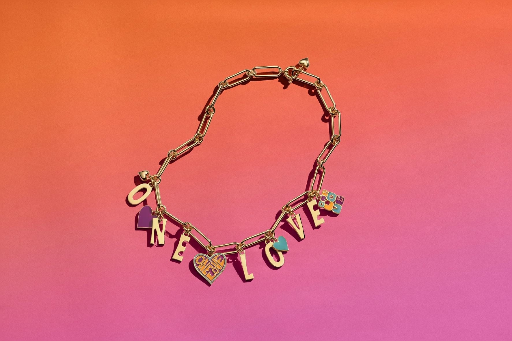 また、「One Love」のチャームが揺れる、ゴールドトーンのネックレスは、¥13,200(税込)で発売予定です。