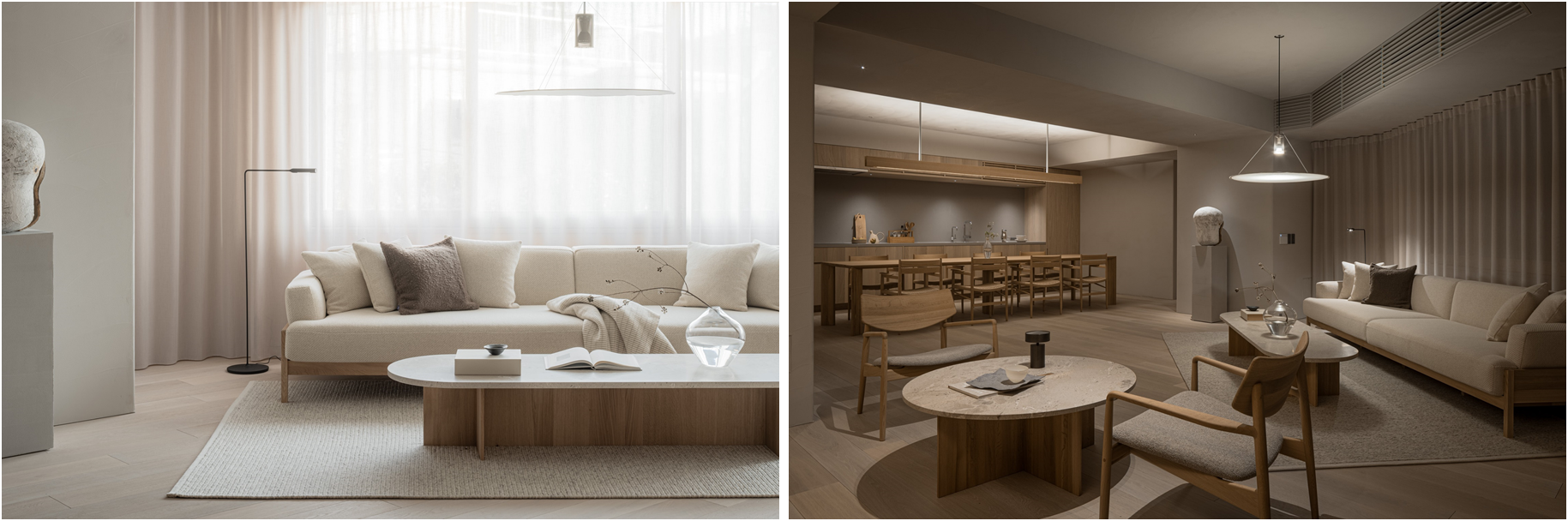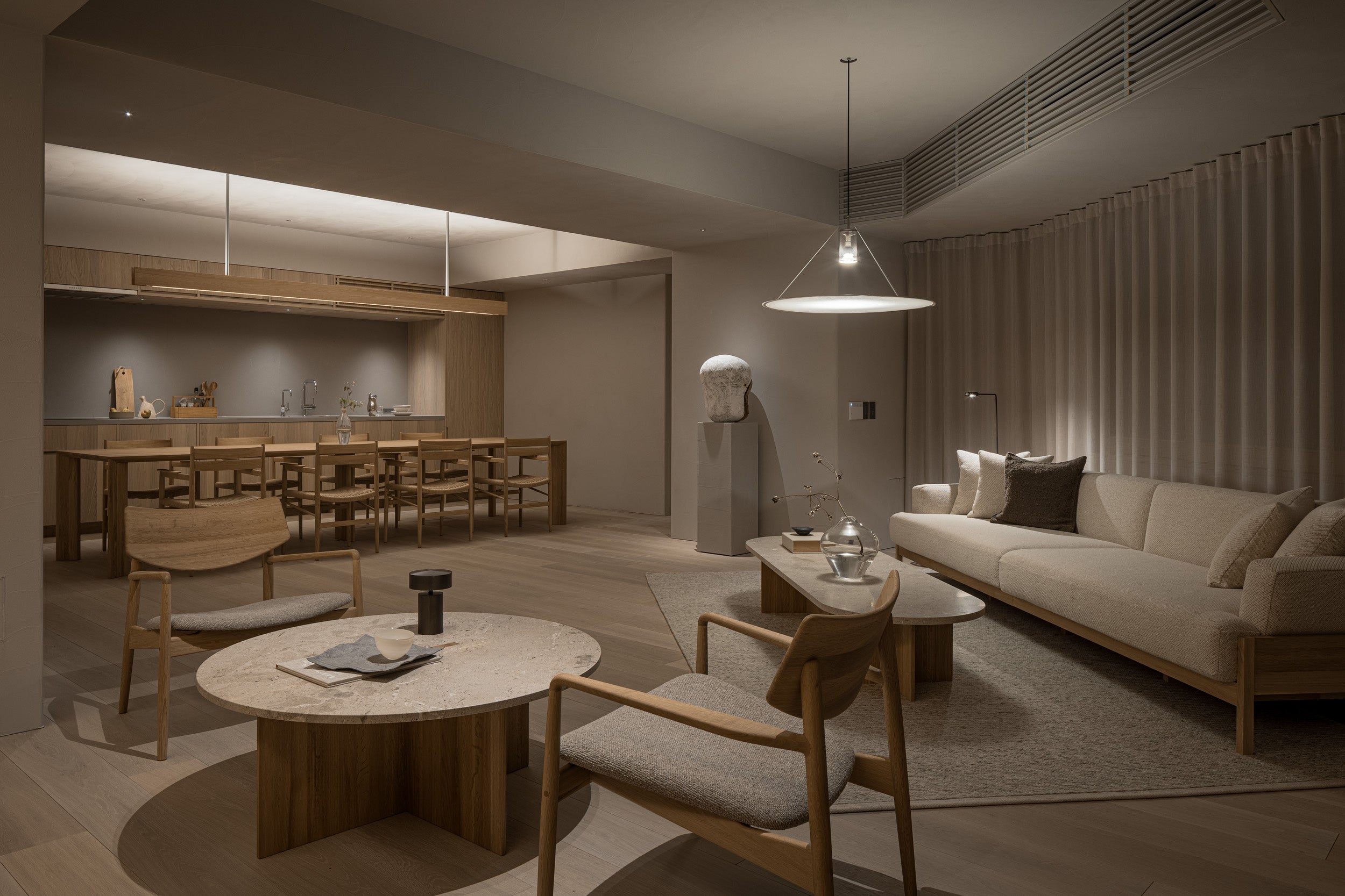 本邸のコンセプト「Crafted Space」とは、どこまでも丁寧に設えた空間のことを表現している。あらゆるディティールまで想いが込められ、手をかけられるところは全て手をかけて出来上がった空間。特別な演出をしなくとも、暮らしを第一に、緻密に構築して作り上げた空間こそオーソドックスであり、新たなラグジュアリーの価値であり、住む人に根源的な心地よさをもたらす。それは住むことの本質的な豊かさにふさわしいものであり、住まいに求められるニーズが変化してきている今、社会に提案したい空間である。 また本邸では内装材及び家具の製作は、芦沢啓治氏デザインのもとカリモク家具が手掛け、空間全体の一体感を表現。リノベーションにおける温熱環境の向上アプローチの一手として、木製内窓も制作し実装した。上質感のある木製窓サッシは、外部の音や外気温の影響を緩和する効果のみならず、その質感により空間全体の統一感を高めている。