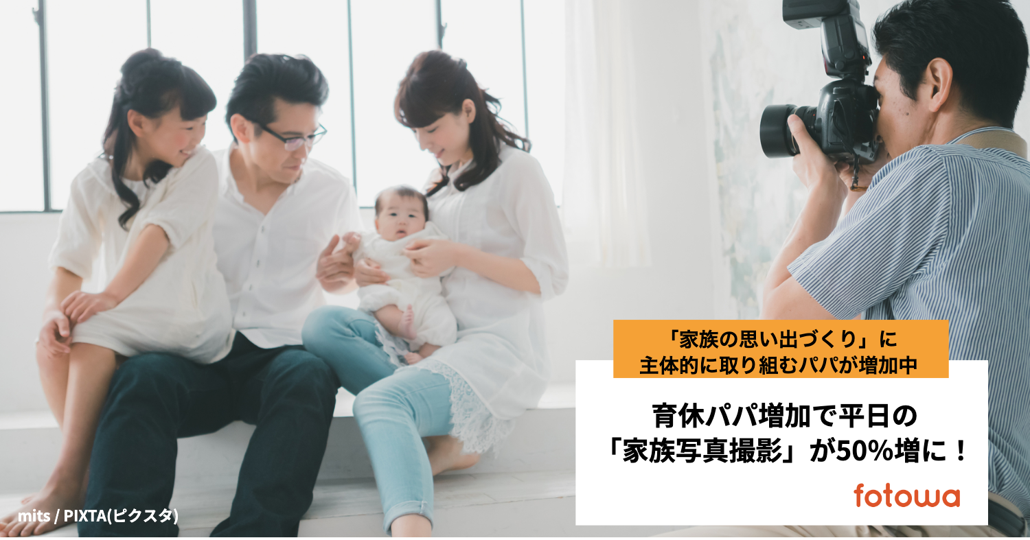 - 男性の育休取得率 過去最高の13.97% 「fotowa」男性ユーザーの平日撮影件数50%増加!