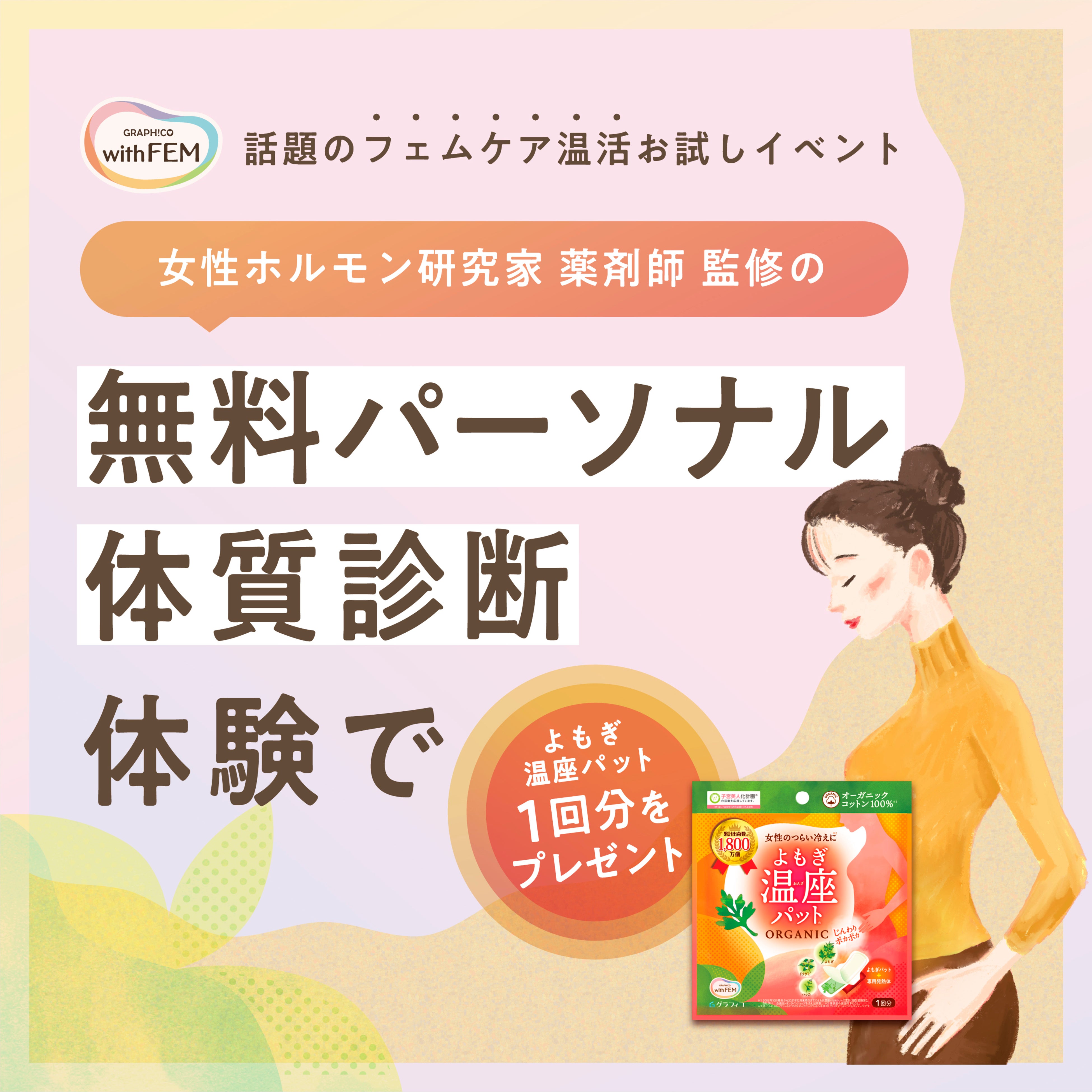 株式会社グラフィコ(代表取締役社長 CEO:長谷川純代)は、10/29(土)より生活雑貨の専門大店「ロフト」の4店舗においてフェムケアブランド「ウィズフェム」が展開する温熱パット「よもぎ温座パット」をお試しいただけるイベントを開催いたします。