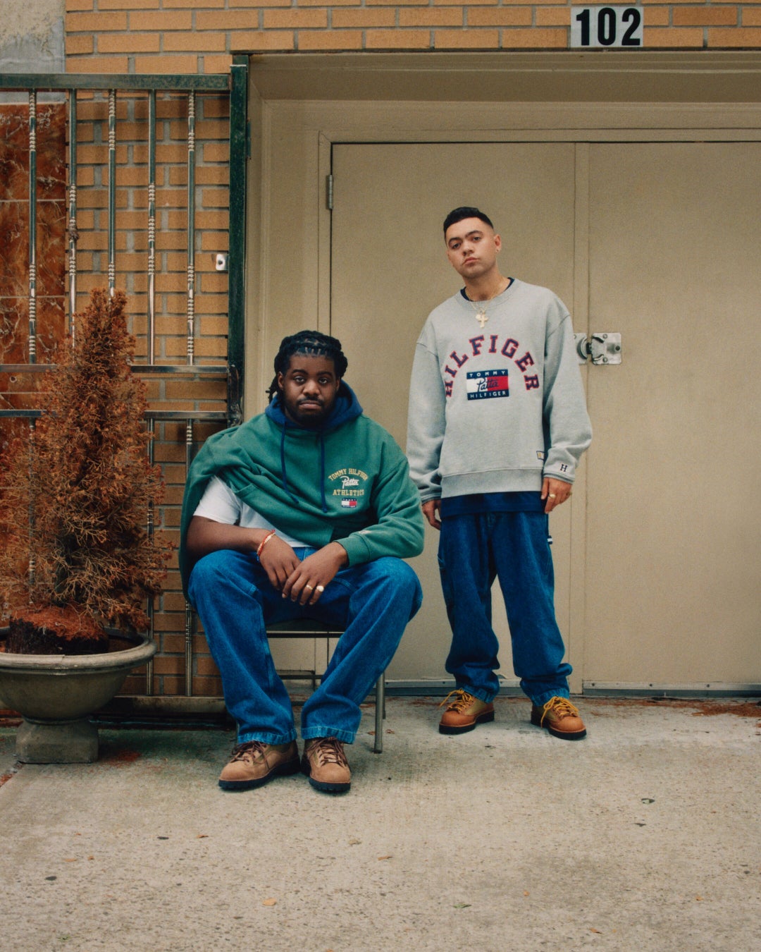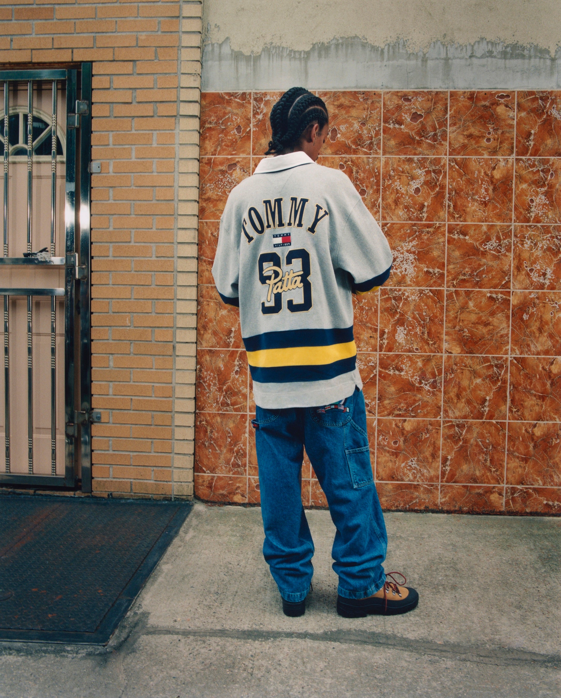 このコレクションは、90年代のヒップホップから影響を受けたクラシックなスタイルを再解釈したものです。プレッピーな定番アイテムは、タイムレスなリラックスフィットに生まれ変わり、パタのロゴとトミーのエンブレムがTシャツやフーディに組み合わされています。バーシティジャケットは、ヒップホップの歴史において重要な年である1993年を強調したグラフィックが特徴的です。このコレクションでは、トミーの特徴である明るいカラーパレットに、パタからインスパイアされたソフトな色調を融合させています。「Patta X Tommy」は、ニューヨークの90年代の雰囲気をモダンなストリートウェアに取り入れた、日本では9型12ピースからなるユニセックススタイルで構成されています。