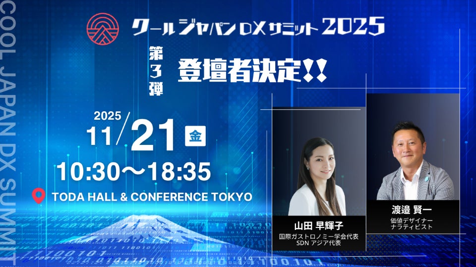 クールジャパンDXサミット実行委員会(運営事務局:Vpon、本社:東京都渋谷区、代表取締役社長:篠原 好孝)は、2025年11月21日(金)に開催する「クールジャパンDXサミット2025」の第三弾、豪華登壇者をご紹介します。
