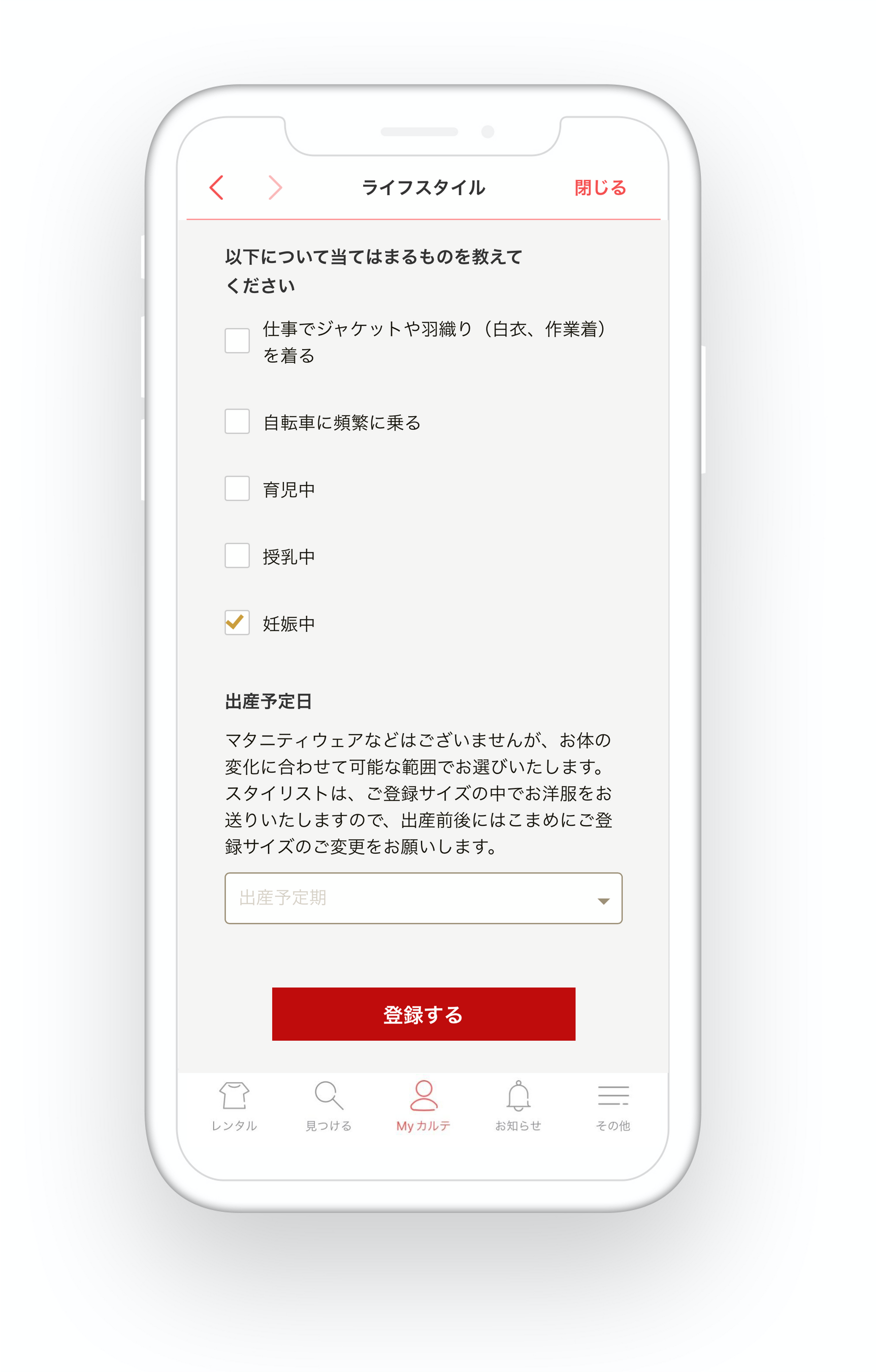 『airCloset』では、マタニティ期だけでなく、授乳中や育児中などライフスタイルに関する情報をいつでも登録することが可能です。一人ひとりに似合うお洋服をお選びする「パーソナルスタイリング」を行うこと、加えてお客様のスタイルカルテに登録された最新情報をもとにスタイリングすることで、お客様のライフスタイルの変化に合わせたファッション体験のご提供が実現しています。