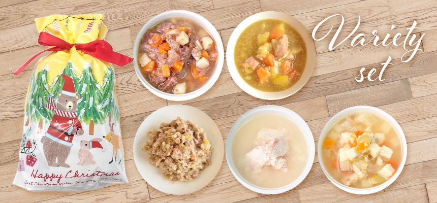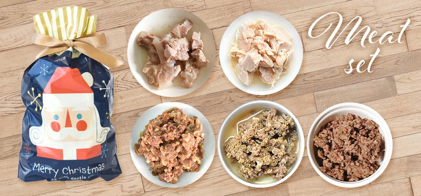 お肉が大好きな犬のために、バラエティ豊かに4種類のお肉のおいしさを楽しめるセットをご用意しました。クリスマスの特別パッケージに入れてお届けします。1年に1度のクリスマスの特別なプレゼントになりますように。通常価格2,380円から24.3%OFFの1,800円での特別販売です。120セット限定です。