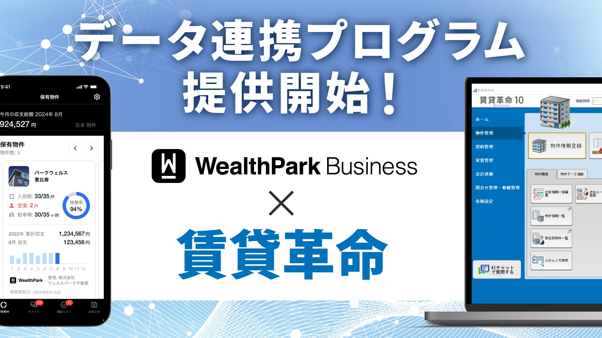「賃貸革命」と「WealthParkビジネス」による データ連携プログラムの提供を開始