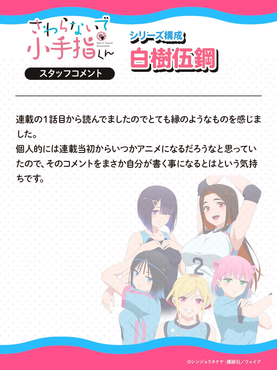 TVアニメ「さわらないで小手指くん」は、2025年10月より、放送開始となります。