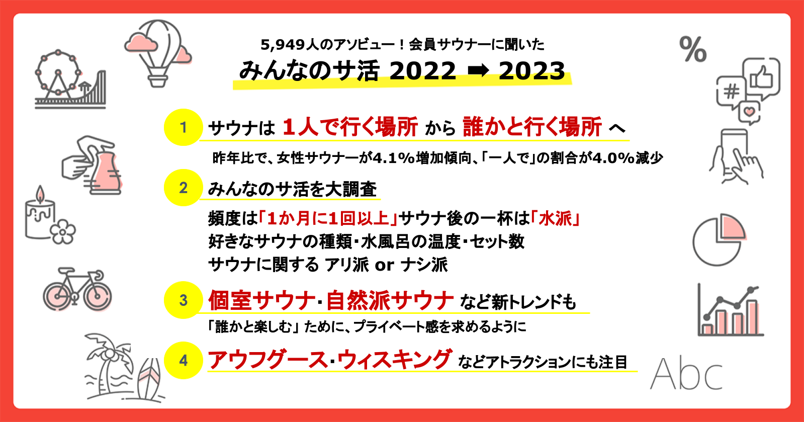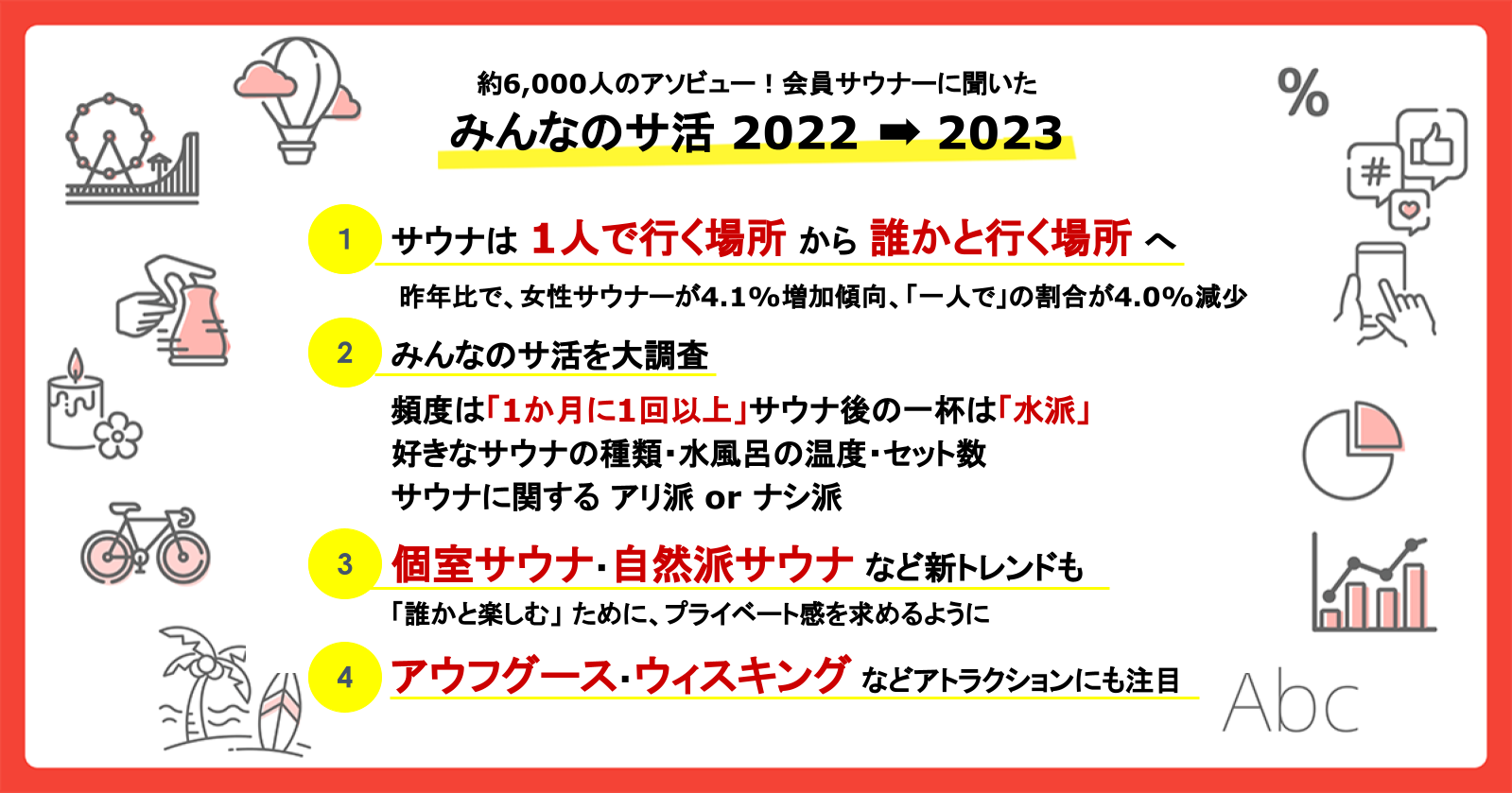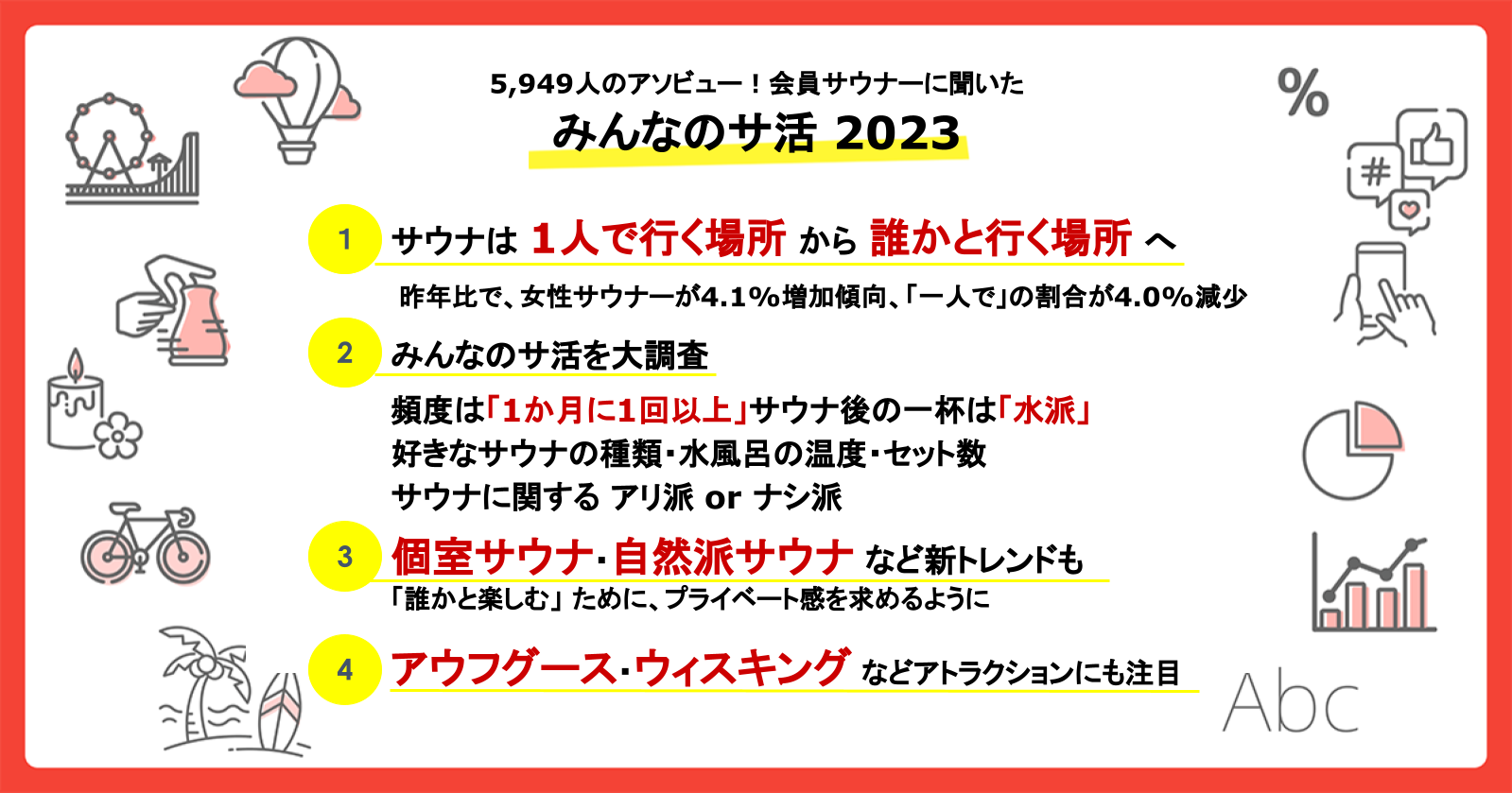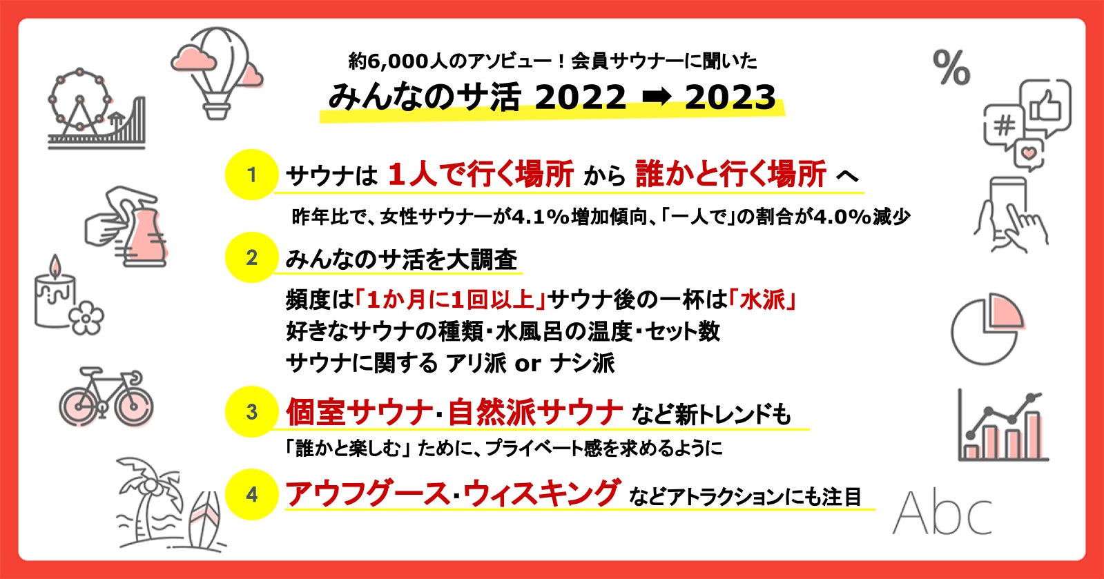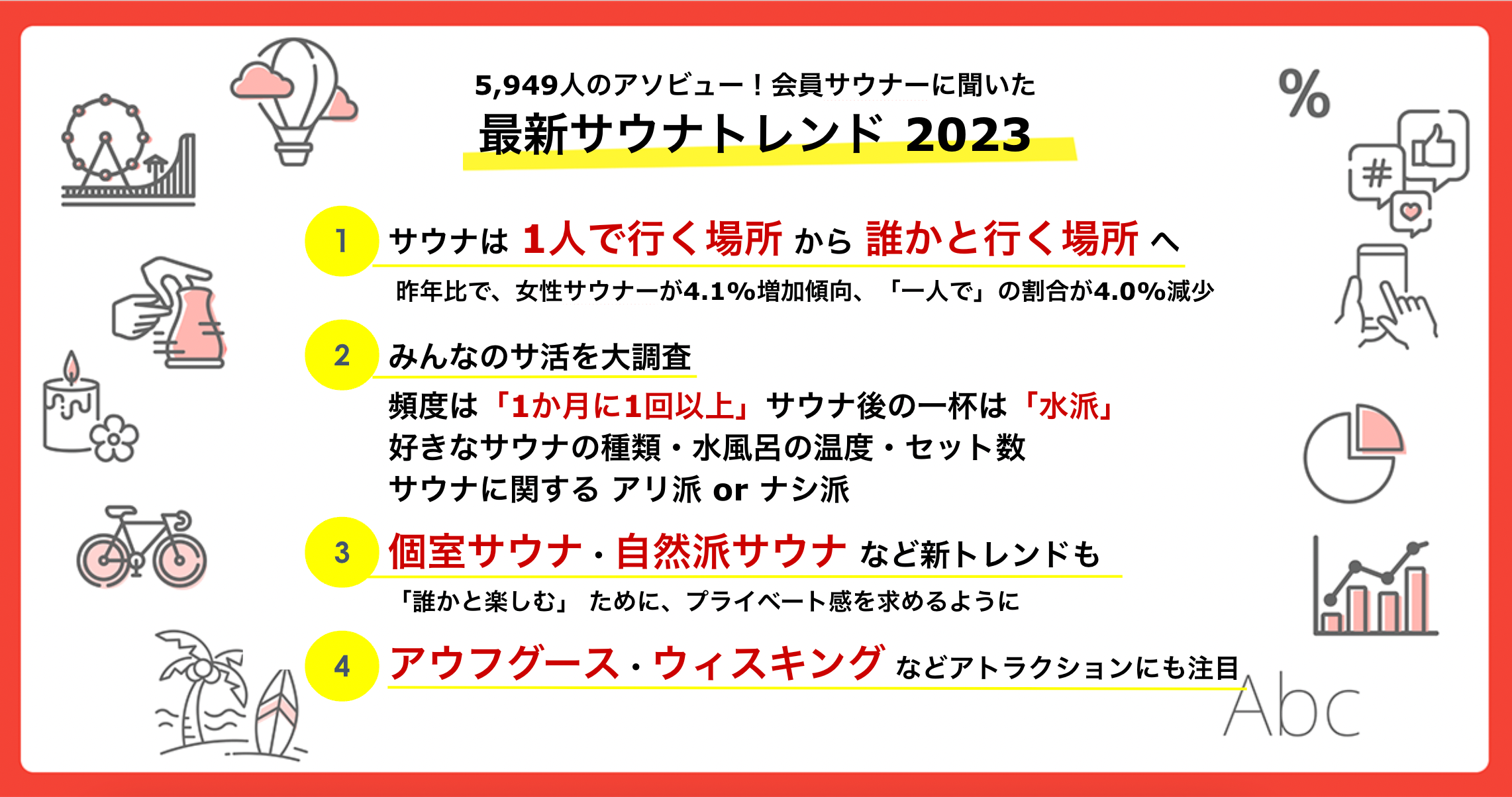 【アソビュー!調査リリース】約6,000人のアソビュー!会員サウナーに聞いた最新サウナ事情「みんなのサ活 2022→2023」を発表。