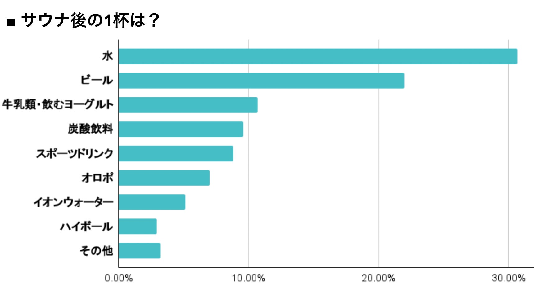 - 【みんなのサ活】=「1か月に1回以上」「休日にリラックス目的で」「サウナ後の一杯は 水派 or ビール派 」