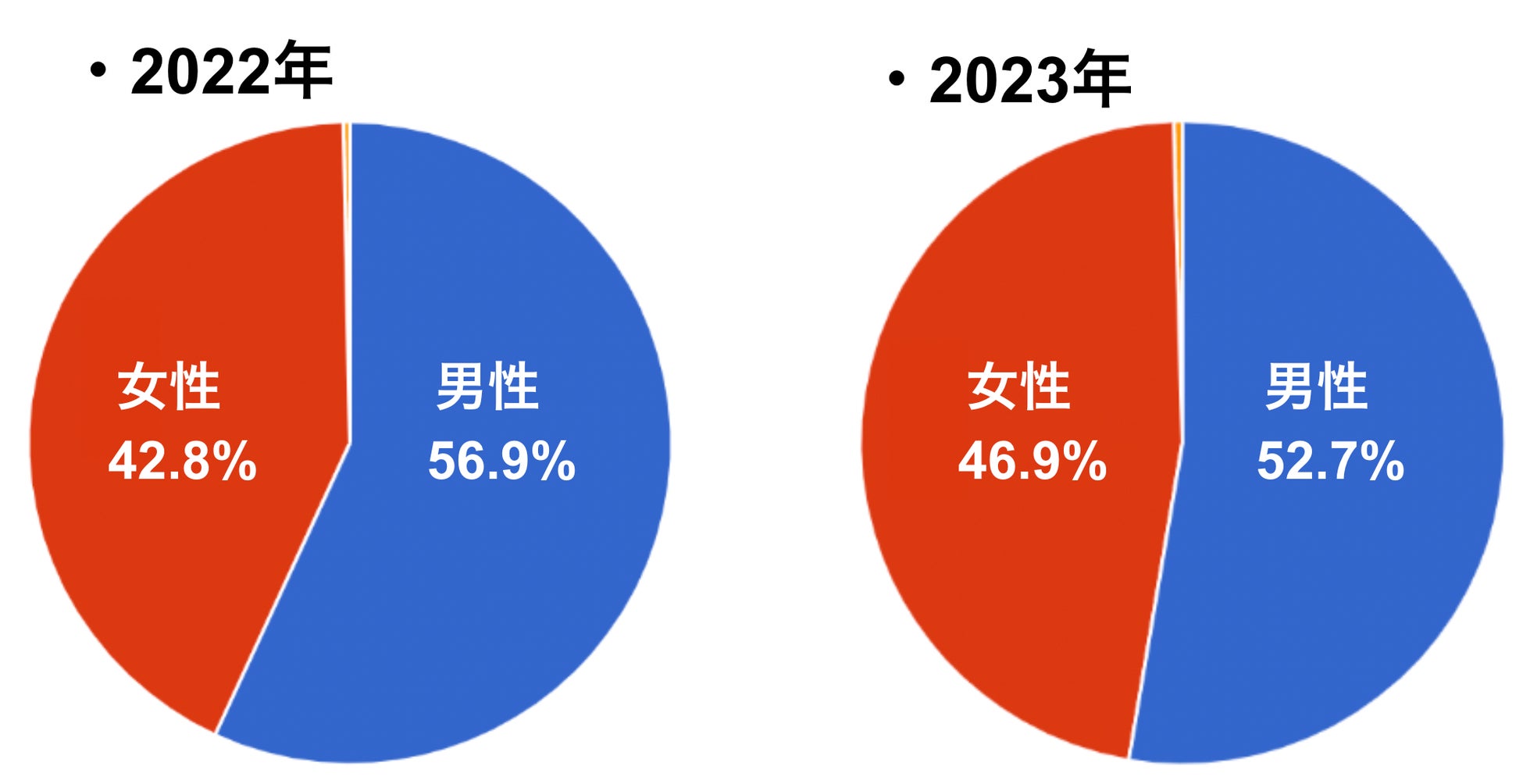 昨年行った同様のアンケートと比べ、サウナーの男女比率は4.1%女性が増え、「男性」52.7%、「女性」46.9%と男女比は約1:1に近づいています。