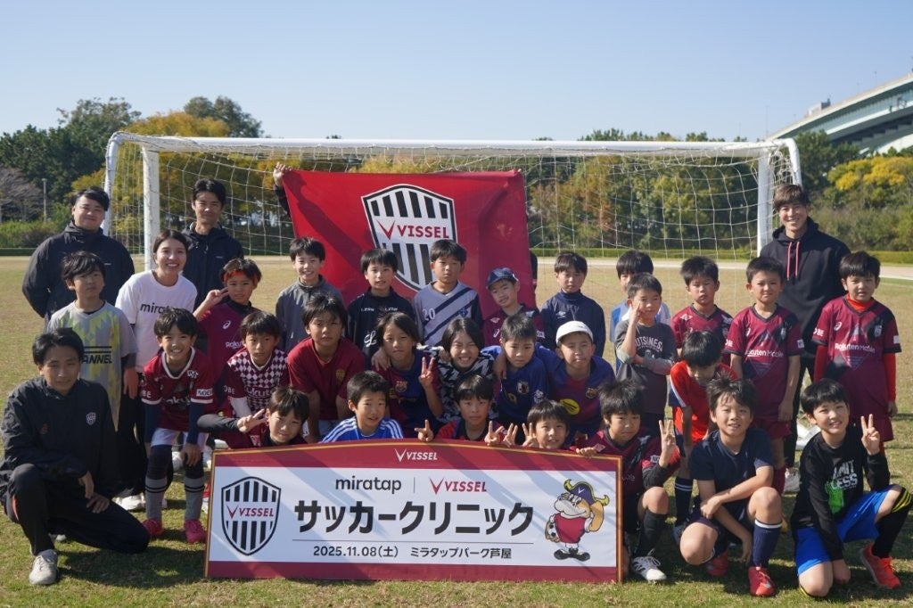 住宅設備機器のインターネット販売を行う株式会社ミラタップ(所在地:大阪市)は、2025年11月8日(土)、当社がネーミングライツを取得した「ミラタップパーク芦屋」にて、プロサッカーチーム「ヴィッセル神戸」との初の取り組みとなるサッカークリニックを開催しました。