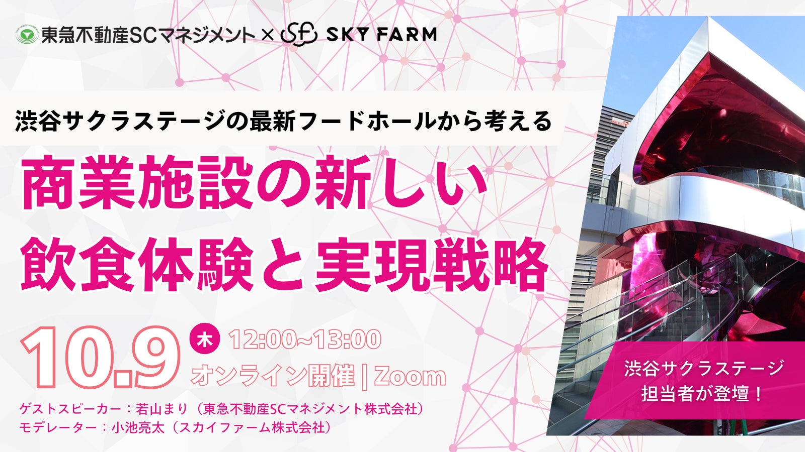 ウェビナー名:【東急不動産SCマネジメント×スカイファーム】渋谷サクラステージから紐解く、商業施設の飲食体験解説セミナー