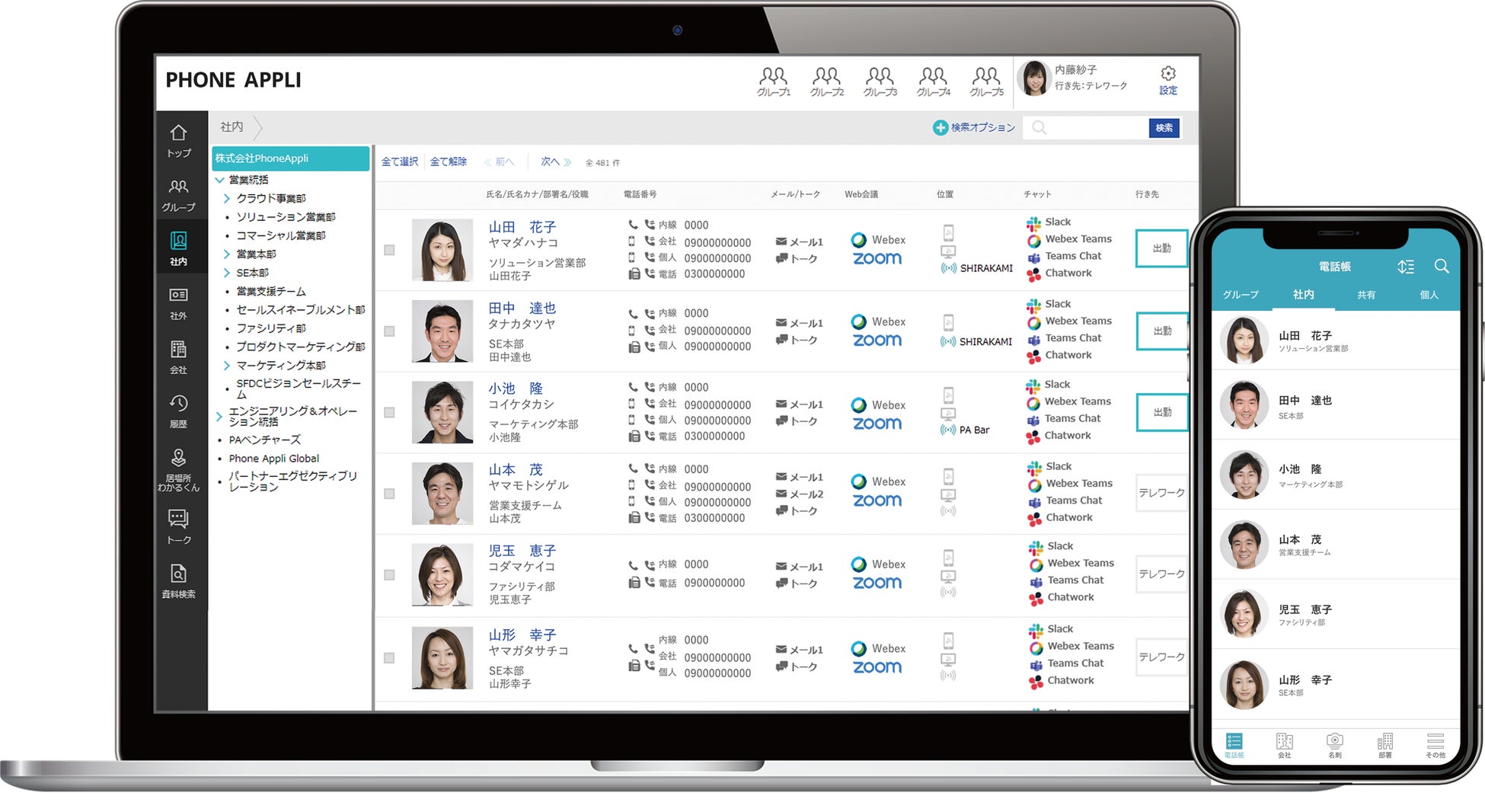 PHONE APPLI PEOPLEは、組織を強くするコミュニケーションポータルです。キーワードやスキルなどで社内の専門家を、名刺データからお客様や取引先を、それぞれ簡単に見つけだし、最適なツール(チャット、メール、電話、Web会議等)でコミュニケーションがとれ、コラボレーションを活性化させます。離れて働くことが当たり前になった時代に、「誰に相談するのが最適なのか?」を解決するサービスとして、多様な働き方の実現を目指す働き方改革推進企業様をサポートしています。