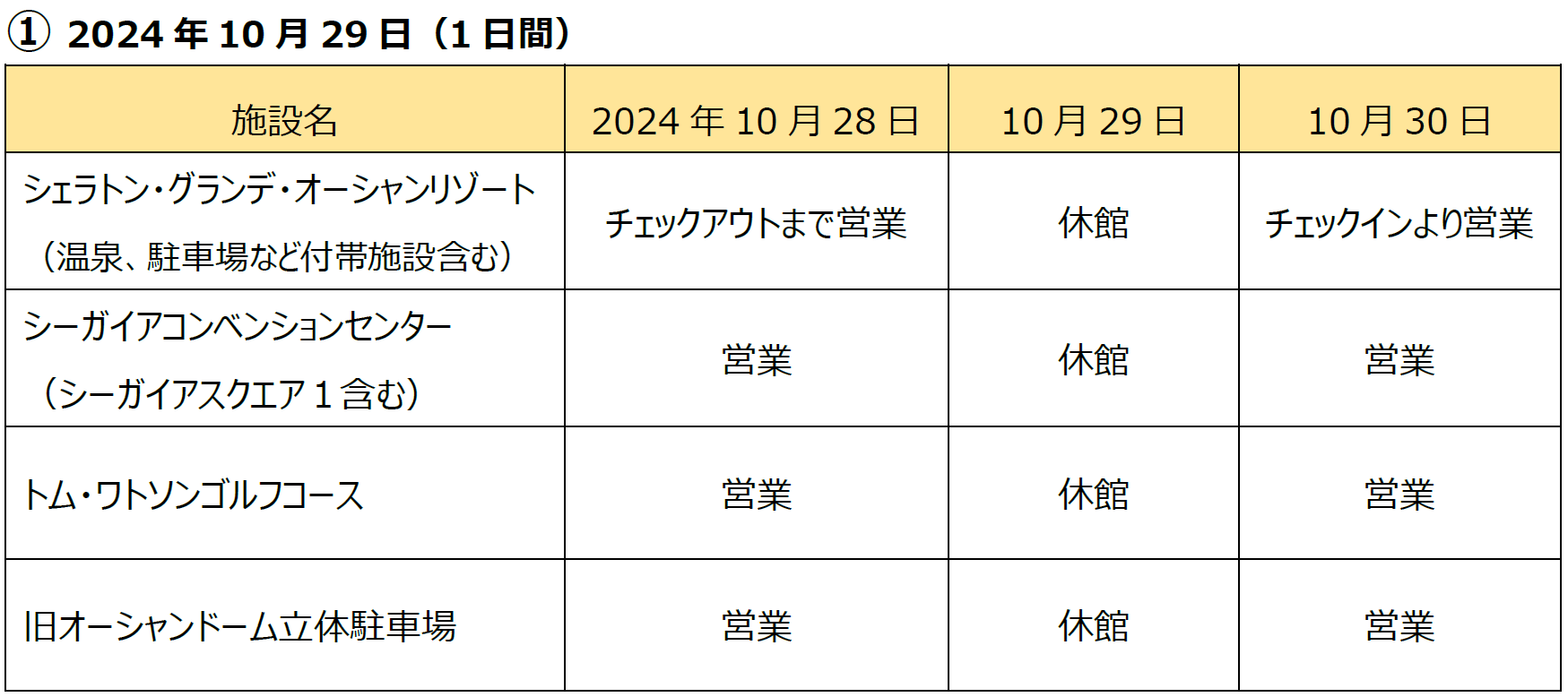 フェニックス・シーガイア・リゾート受変電設備の更新及びメンテナンス工事に伴う一部施設休館のお知らせ