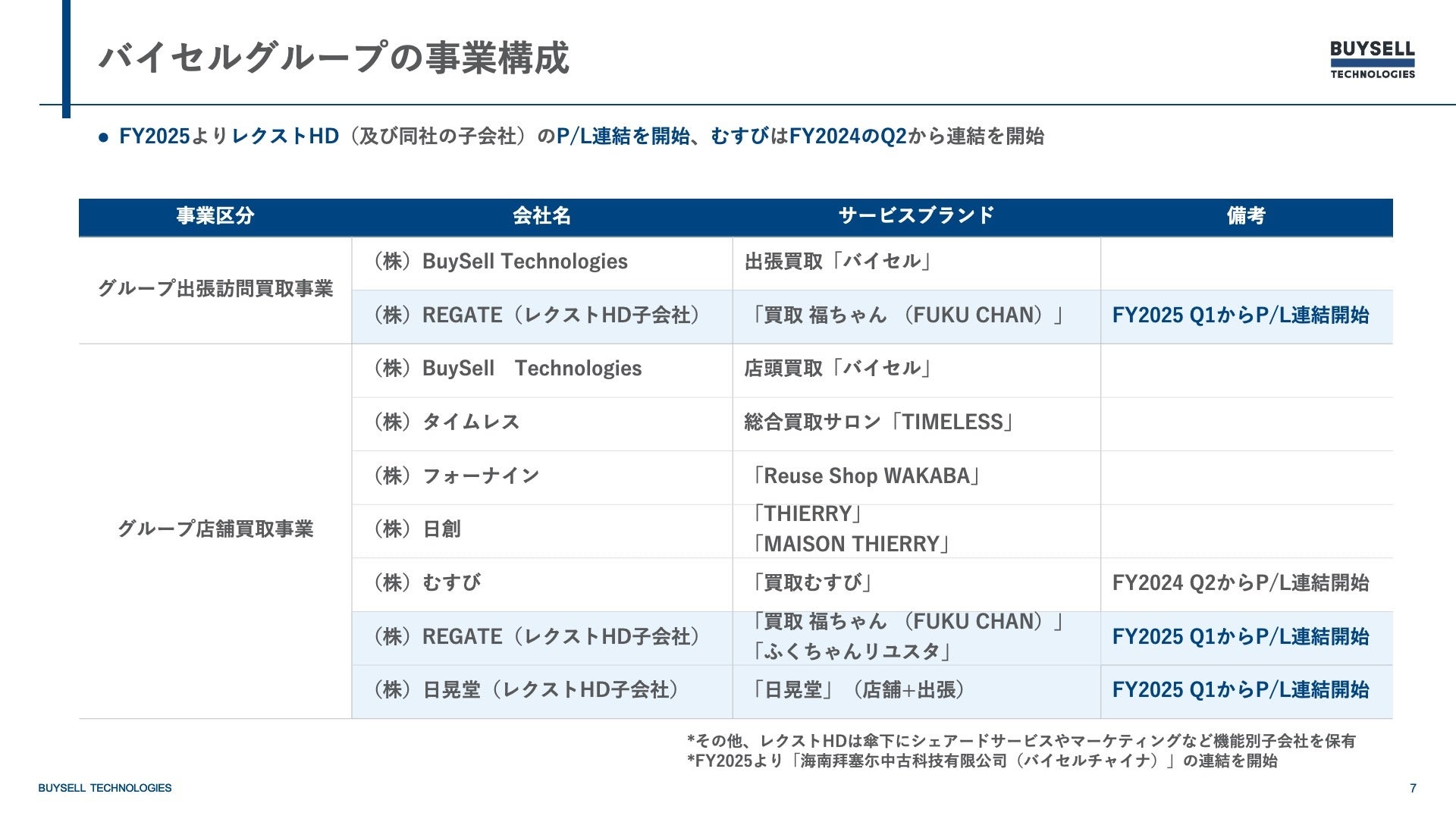 バイセルグループとしての出張訪問買取事業、店舗買取事業の連結内訳は以下の通りとなります。