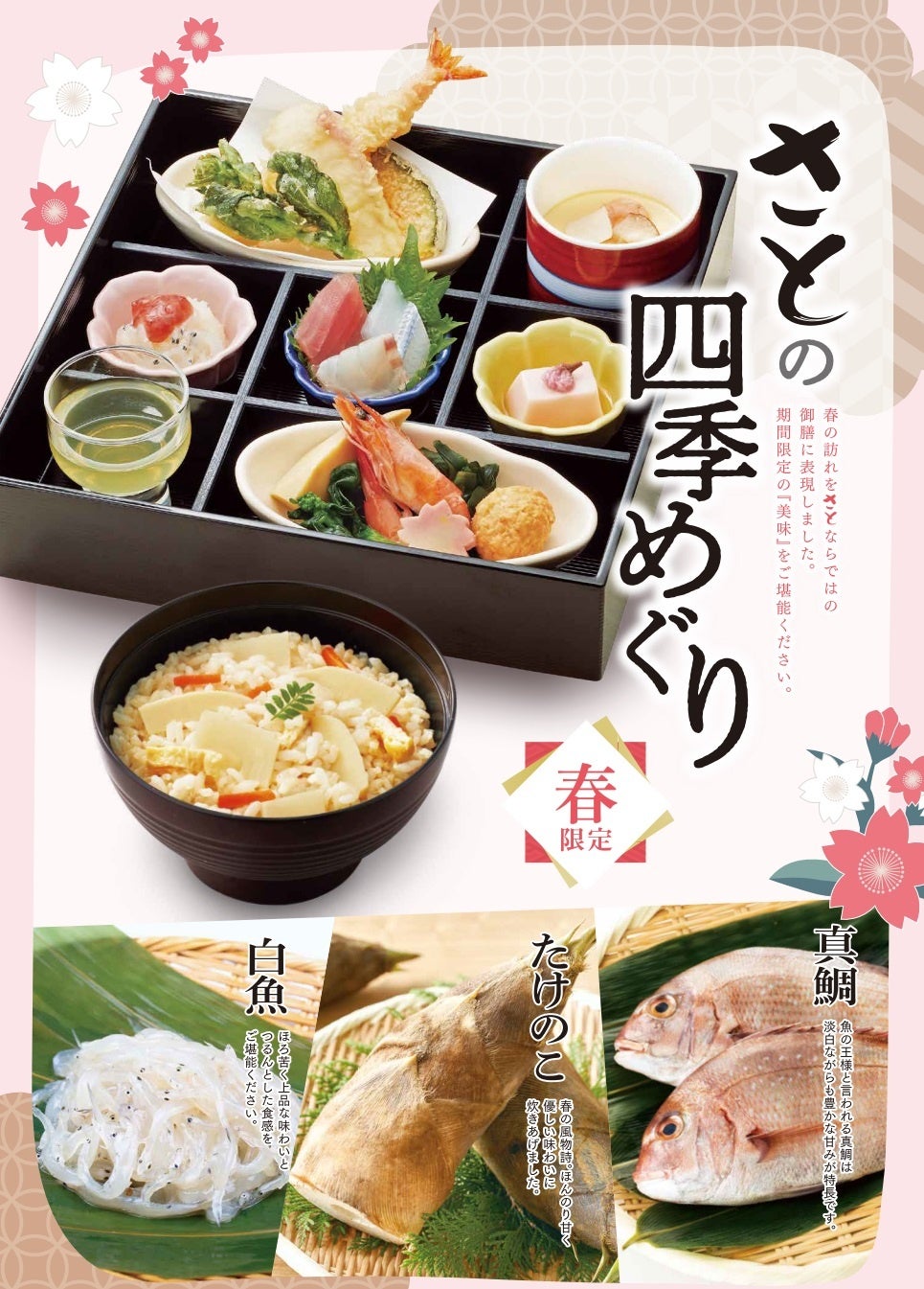 寒さも和らぎ、春が待ち遠しくなるこの季節、和食さとの春限定の和膳で一足早い『春』を是非お楽しみください。