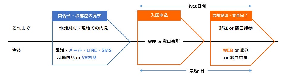 そこで公社はイタンジ株式会社の「ノマドクラウド」及び「申込受付くん」を導入することにより、これまで約10日間を要していた入居申込から審査完了までの期間を最短1日に短縮することで、顧客の負担軽減と業務効率化を図ります。また、2020年度から導入しているVR内見との併用により見学から入居申し込み、審査完了まで非対面での対応が可能となり、新型コロナウイルスの感染リスクの低減を実現します。
