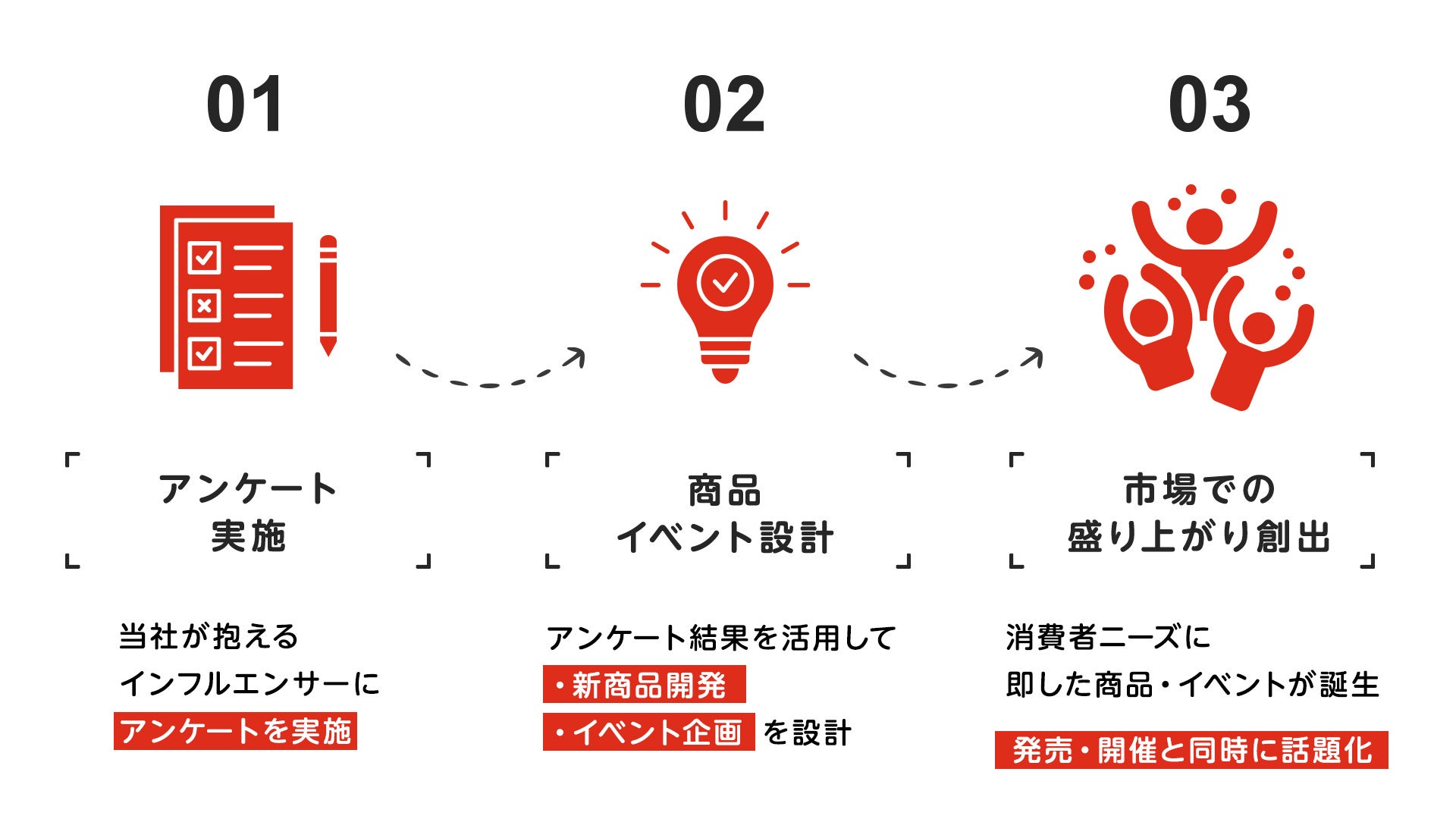本サービスは、商品開発やイベント企画における「本当に欲しい」「投稿したくなる」ポイントを、インフルエンサーのリアルな声をもとに可視化・反映するためのサービスとなり、これにより、企業はバズる(発信されやすい)企画を設計段階から織り込むことが可能になります。