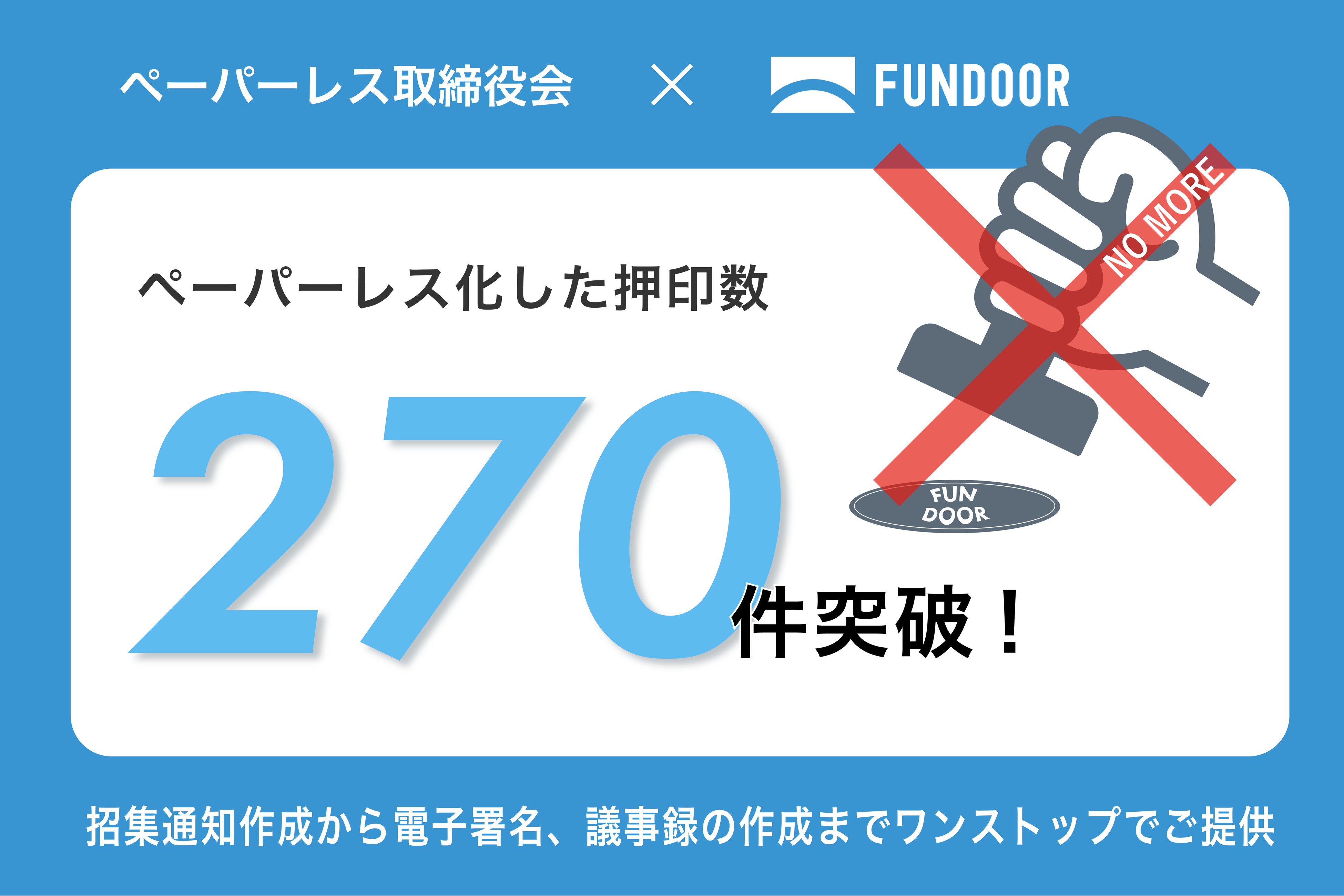 経営管理プラットフォーム「FUNDOOR」取締役会機能ペーパーレス化した押印数 270件突破