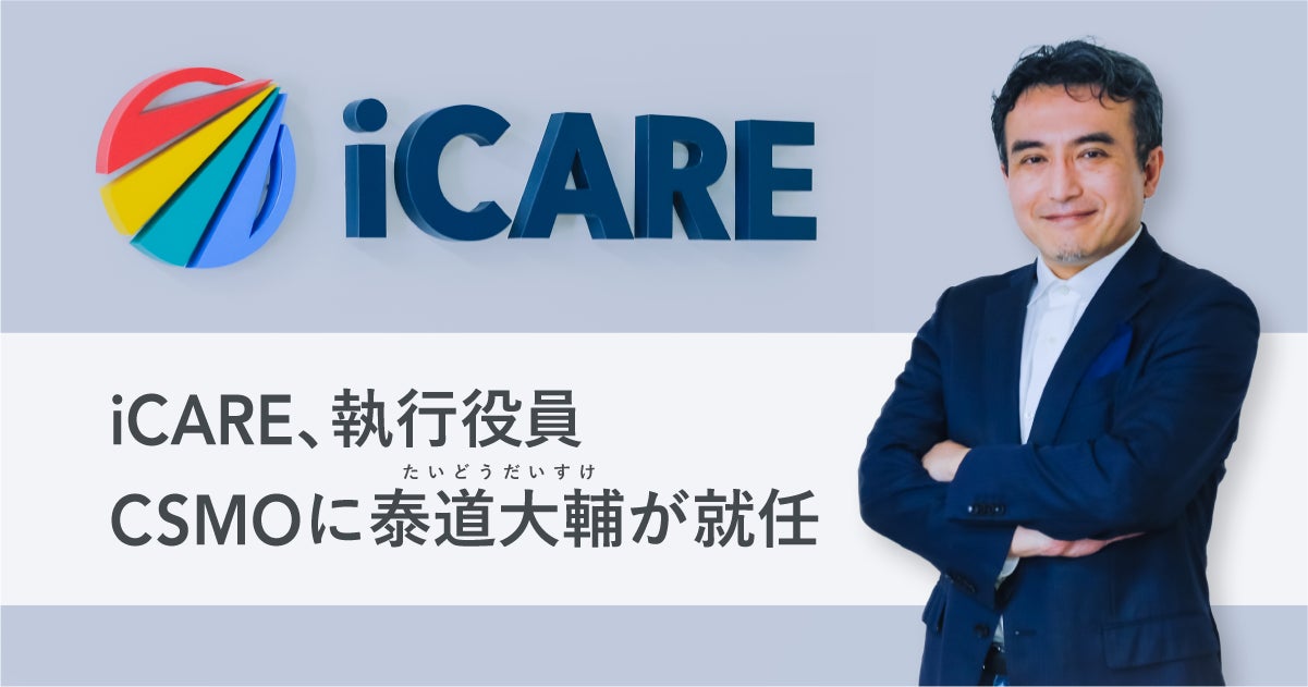 泰道は2022年3月にiCAREに入社後、これまでセールス&マーケティング部門やカスタマーサクセス部門の責任者、Carelyプロダクト責任者として、幅広くiCAREの事業拡大に尽力してきました。その泰道を執行役員として社内から選任し、新たな経営体制とすることで、より一層事業の推進スピードを加速させ、パーパスの実現に向け邁進してまいります。