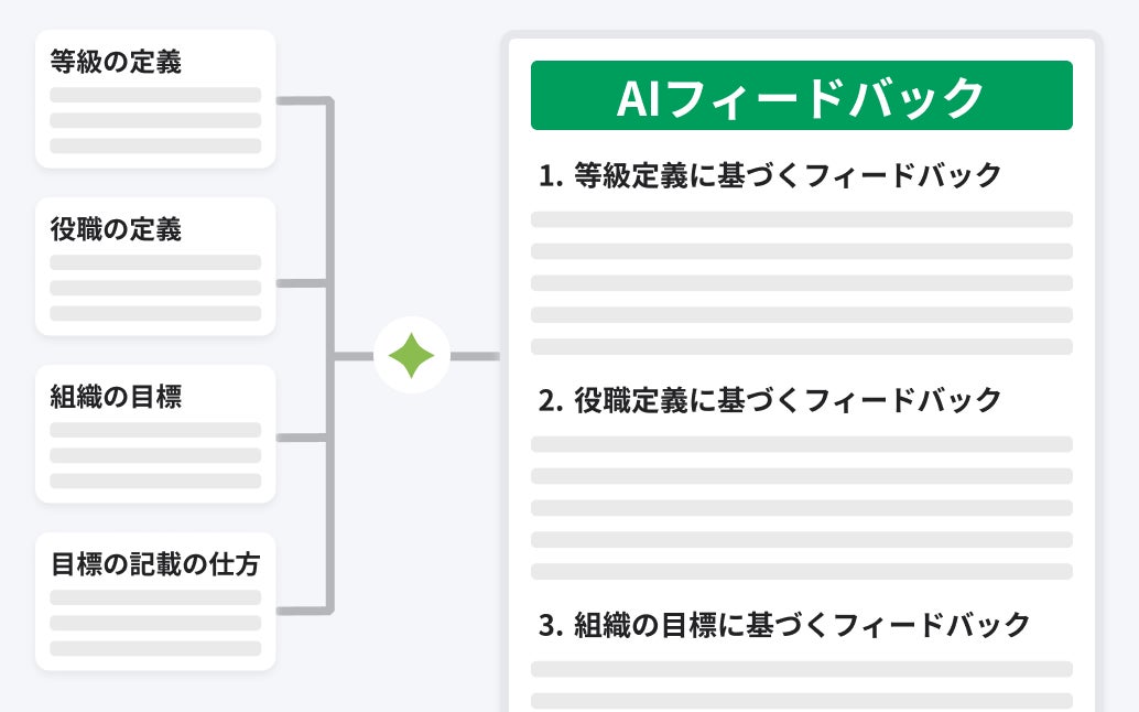 評価対象者が作成した目標に対して、管理者が設定した基準を満たしているかをAIがレビューします。また、評価者は評価対象者一人ひとりに対するフィードバックの指針として、AIから具体的なアドバイスを受けることが可能です。