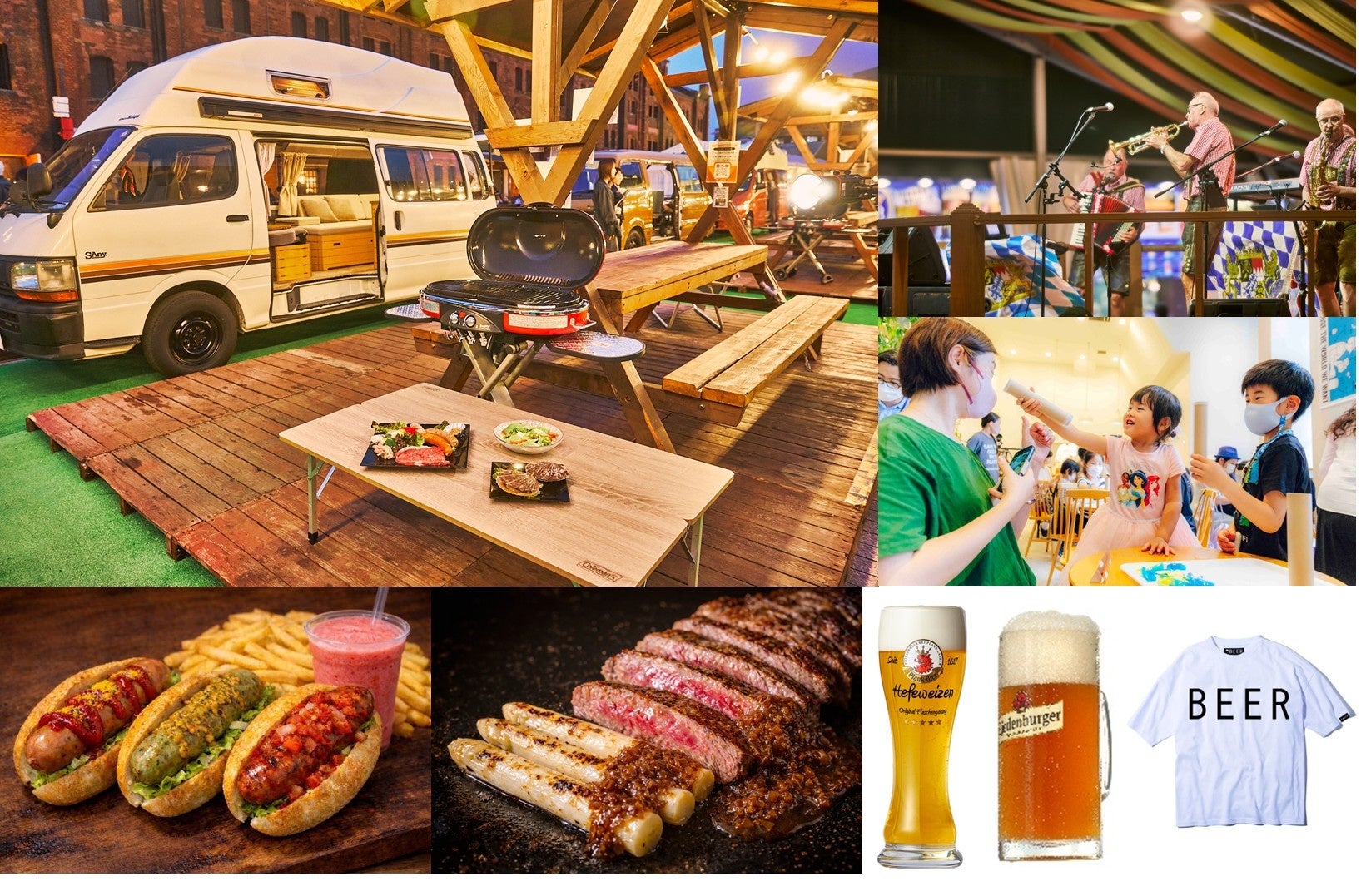歴史的建造物でもある横浜赤レンガ倉庫とみなとみらいの海を臨めるロケーションで“デイキャンプ”をお楽しみいただけます。BBQやキャンピングカーに加え、アウトドア用品ブランド「コールマン」の本格的なアウトドアグッズでつくる“キャンプ飯”を味わっていただけます。今年はエリア区画数を昨年の8区画から10区画へ拡大し、より多くの方にお楽しみいただける空間となっています。
